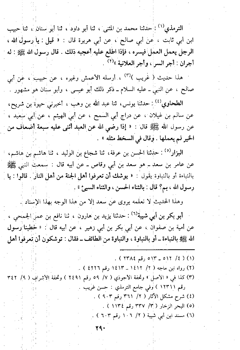 التِّرْمِذِيّ: حَدثنَا مُحَمَّد بن الْمثنى، ثَنَا أَبُو دَاوُد، ثَنَا أَبُو سِنَان، ثَنَا حبيب ابْن أبي ثَابت، عَن أبي صَالح، عَن أبي هُرَيْرَة قَالَ: " قيل: يَا رَسُول الله، الرجل يعْمل الْعَمَل فيسره، فَإِذا اطلع عَلَيْهِ أعجبه ذَلِك. قَالَ رَسُول الله - صَلَّى اللَّهُ عَلَيْهِ وَسَلَّم َ -: لَهُ أَجْرَانِ: أجر السِّرّ، وَأجر الْعَلَانِيَة ".