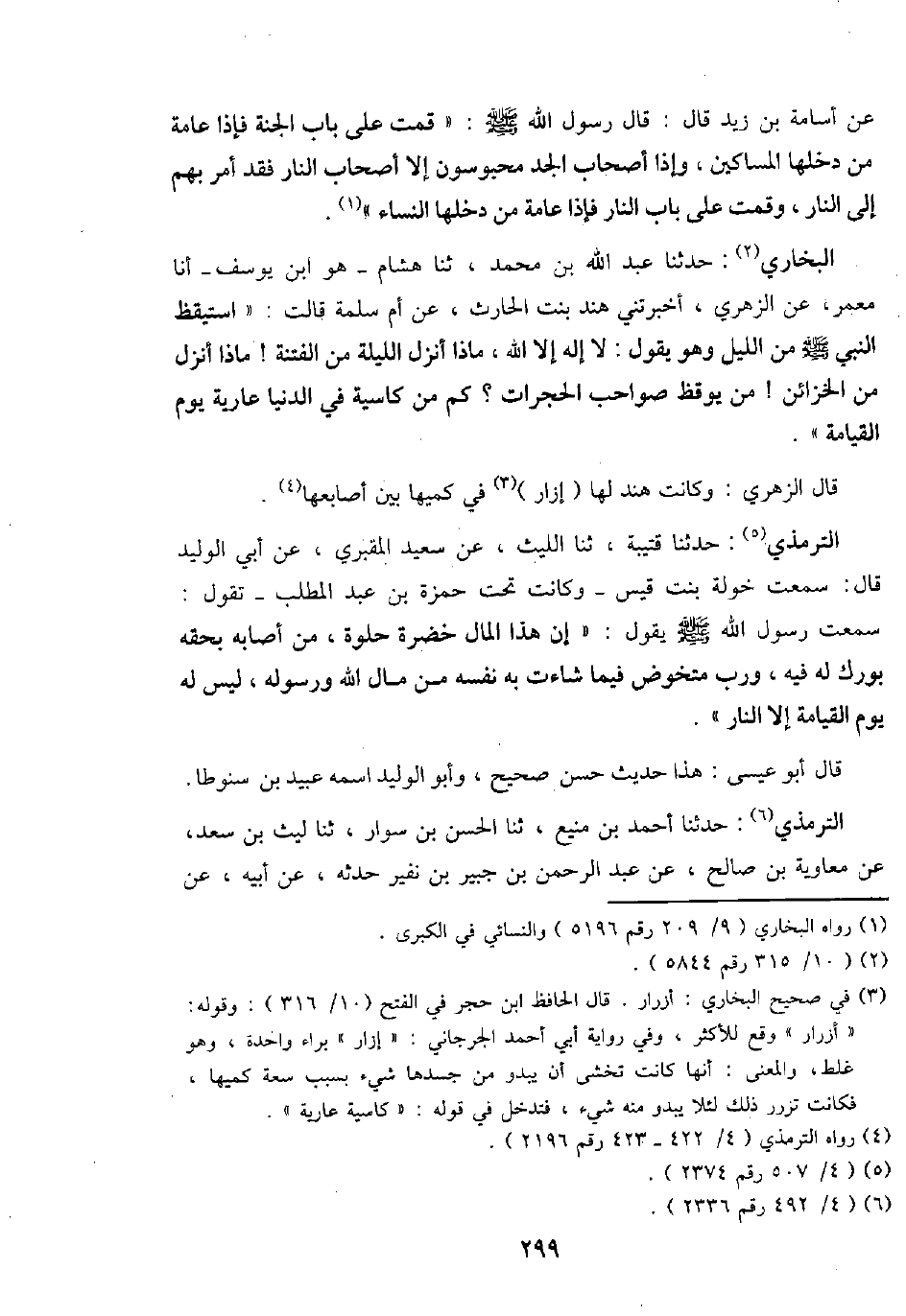 عَن أُسَامَة بن زيد قَالَ: قَالَ رَسُول الله - صَلَّى اللَّهُ عَلَيْهِ وَسَلَّم َ -: " قُمْت على بَاب الْجنَّة فَإِذا عَامَّة من دَخلهَا الْمَسَاكِين، وَإِذا أَصْحَاب الْجد محبوسون إِلَّا أَصْحَاب النَّار فقد أَمر بهم إِلَى النَّار، وَقمت على بَاب النَّار فَإِذا عَامَّة من دَخلهَا النِّسَاء ".