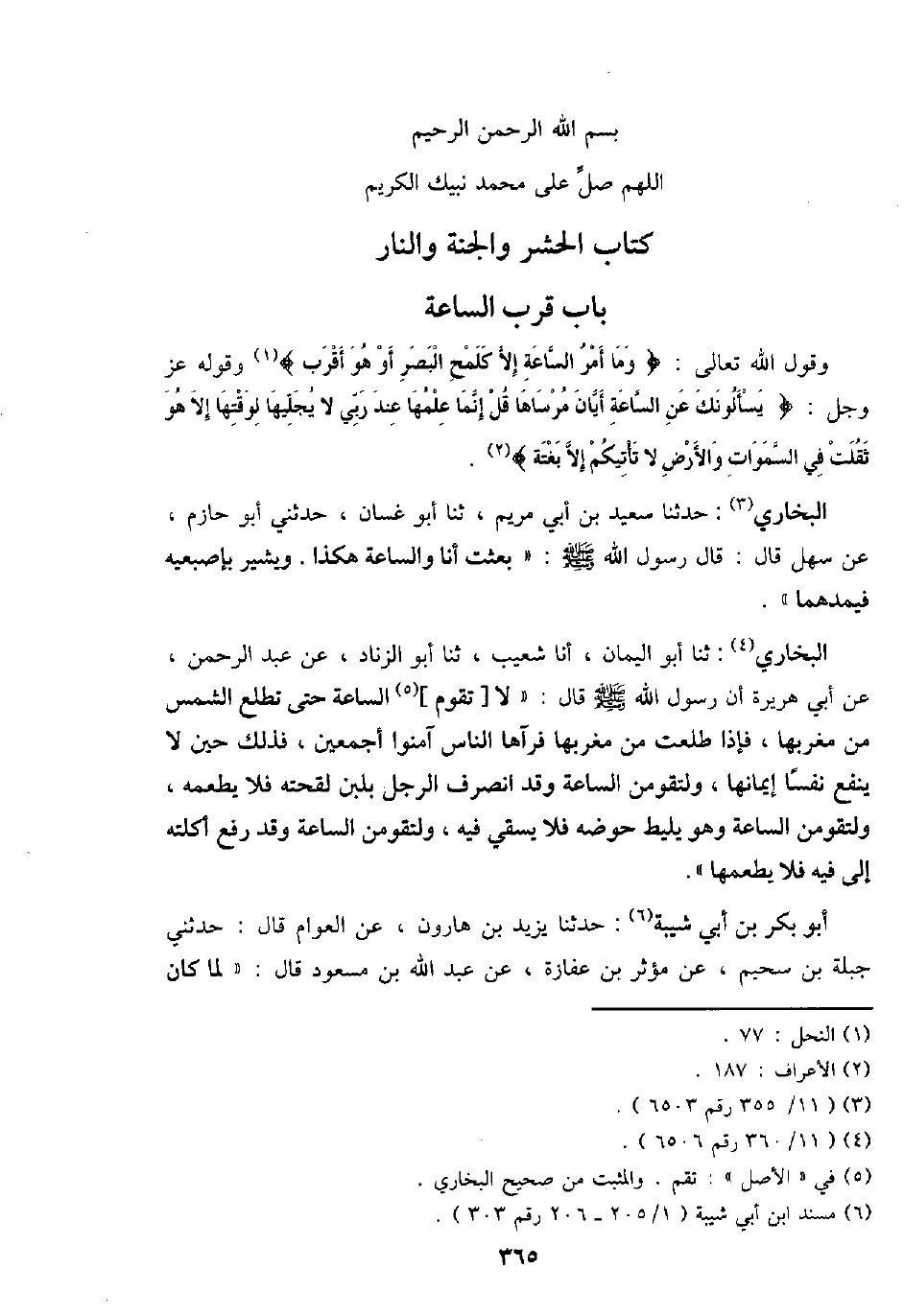 كتاب الْحَشْر وَالْجنَّة وَالنَّار بَاب قرب السَّاعَة