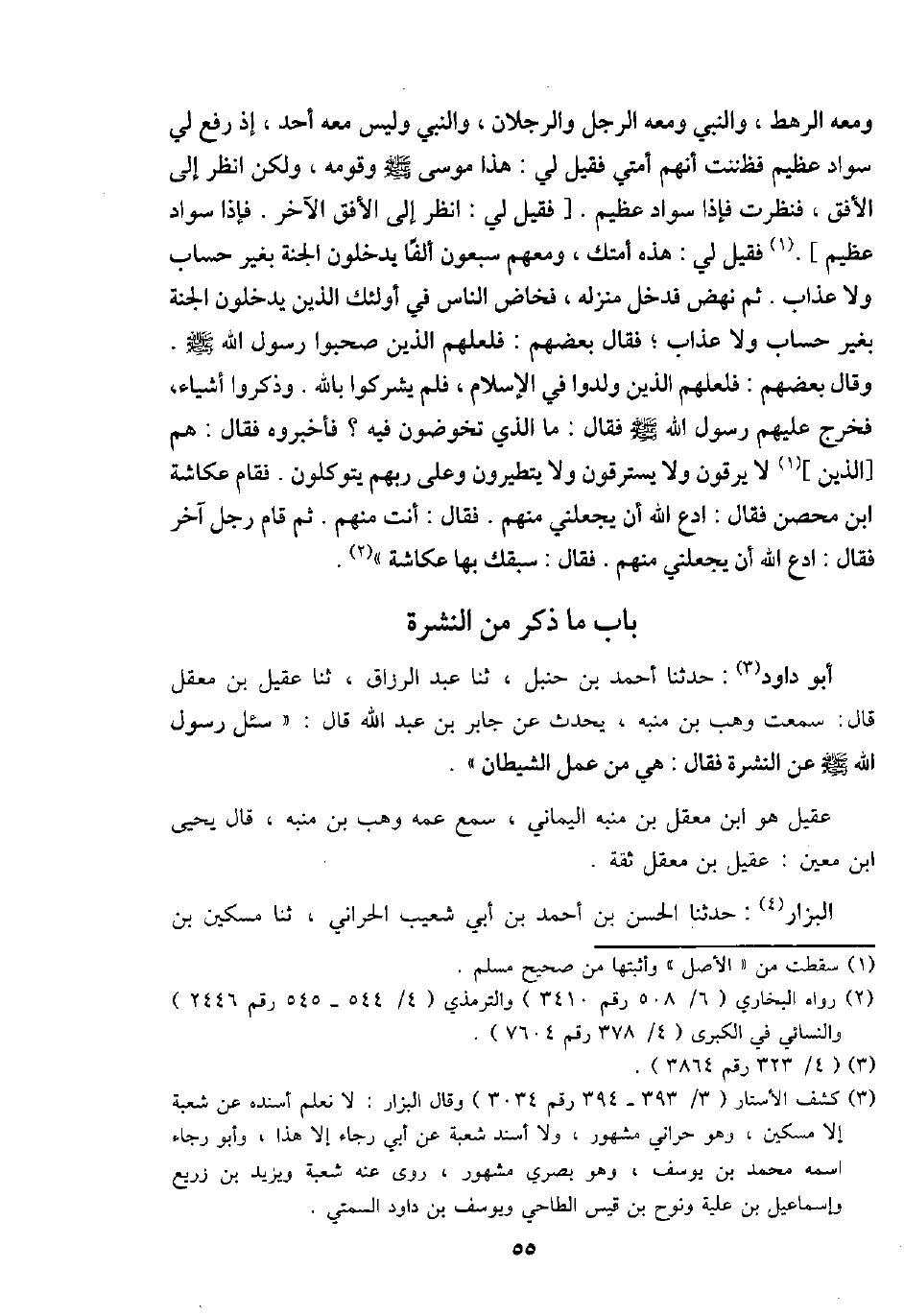 أَبُو دَاوُد: حَدثنَا أَحْمد بن حَنْبَل، ثَنَا عبد الرَّزَّاق، ثَنَا عقيل بن معقل قَالَ: سَمِعت وهب بن مُنَبّه، يحدث عَن جَابر بن عبد الله قَالَ: " سُئِلَ رَسُول الله - صَلَّى اللَّهُ عَلَيْهِ وَسَلَّم َ - عَن النشرة فَقَالَ: هِيَ من عمل الشَّيْطَان ".
