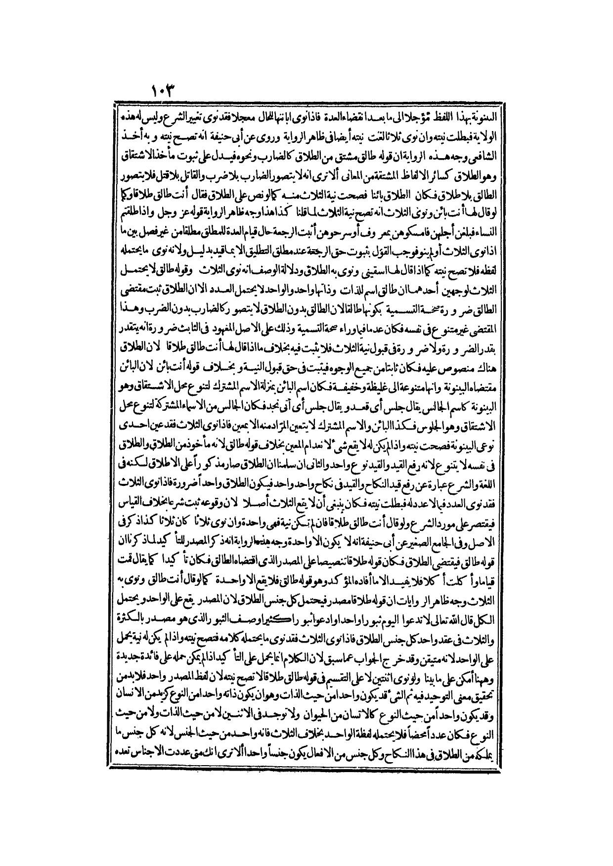 وَالثَّانِي: إنْ سَلَّمْنَا أَنَّ الطَّلَاقَ صَارَ مَذْكُورًا عَلَى الْإِطْلَاقِ لَكِنَّهُ فِي اللُّغَةِ وَالشَّرْعِ عِبَارَةٌ عَنْ رَفْعِ قَيْدِ النِّكَاحِ؛ وَالْقَيْدُ فِي نِكَاحٍ وَاحِدٍ وَاحِدٌ فَيَكُونُ الطَّلَاقُ وَاحِدًا ضَرُورَةً فَإِذَا نَوَى الثَّلَاثَ فَقَدْ نَوَى الْعَدَدَ فِيمَا لَا عَدَدَ لَهُ فَبَطَلَتْ نِيَّتُهُ، فَكَانَ يَنْبَغِي أَنْ لَا يَقَعَ الثَّلَاثُ أَصْلًا؛ لِأَنَّ وُقُوعَهُ ثَبَتَ شَرْعًا بِخِلَافِ الْقِيَاسِ فَيُقْتَصَرُ عَلَى مَوْرِدِ الشَّرْعِ، وَلَوْ قَالَ: أَنْتِ طَالِقٌ طَلَاقًا فَإِنْ لَمْ تَكُنْ نِيَّةٌ فَهِيَ وَاحِدَةٌ وَإِنْ نَوَى ثَلَاثًا كَانَ ثَلَاثًا، كَذَا ذُكِرَ فِي الْأَصْلِ وَفِي الْجَامِعِ الصَّغِيرِ عَنْ أَبِي حَنِيفَةَ أَنَّهُ لَا يَكُونُ إلَّا وَاحِدَةً.