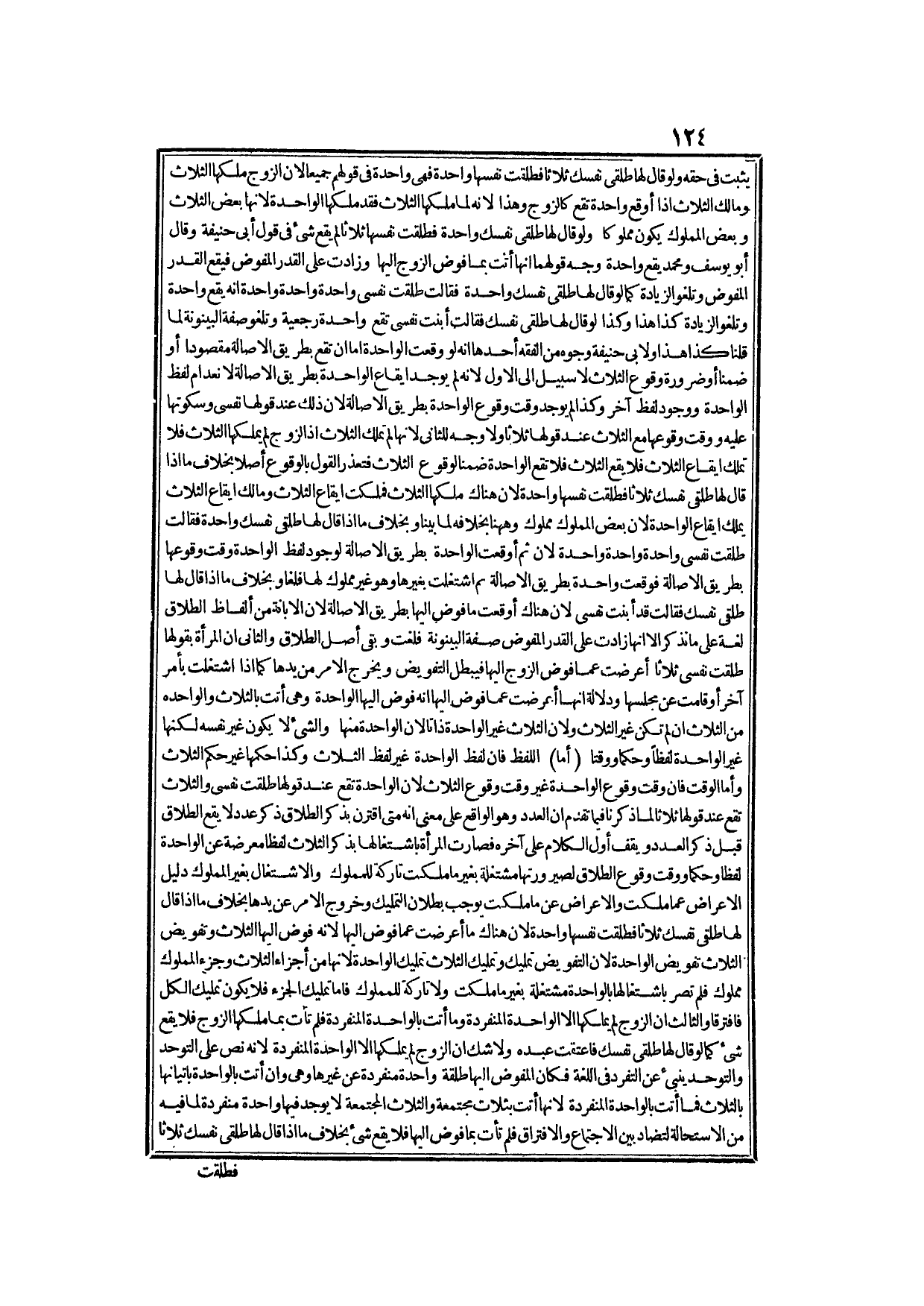 وَالثَّانِي إنَّ الْمَرْأَةَ بِقَوْلِهَا: طَلَّقْت نَفْسِي ثَلَاثًا أَعْرَضَتْ عَمَّا فَوَّضَ الزَّوْجُ إلَيْهَا فَيَبْطُلُ التَّفْوِيضُ وَيَخْرُجُ الْأَمْرُ مِنْ يَدِهَا كَمَا إذَا اشْتَغَلَتْ بِأَمْرٍ آخَرَ أَوْ قَامَتْ عَنْ مَجْلِسِهَا، وَدَلَالَةُ أَنَّهَا أَعْرَضَتْ عَمَّا فُوِّضَ إلَيْهَا أَنَّهُ فَوَّضَ إلَيْهَا الْوَاحِدَةَ وَهِيَ أَتَتْ بِالثَّلَاثِ؛ وَالْوَاحِدَةُ مِنْ الثَّلَاثِ إنْ لَمْ تَكُنْ غَيْرَ الثَّلَاثِ وَلِأَنَّ الثَّلَاثَ غَيْرُ الْوَاحِدَةِ ذَاتًا؛ لِأَنَّ الْوَاحِدَةَ مِنْهَا وَالشَّيْءُ لَا يَكُونُ غَيْرَ نَفْسِهِ لَكِنَّهَا غَيْرُ الْوَاحِدَةِ لَفْظًا وَحُكْمًا وَوَقْتًا.