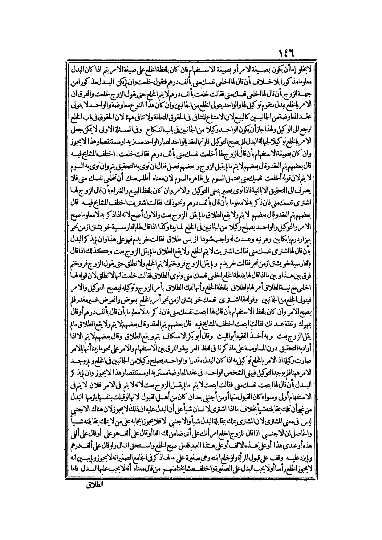 وَقَالَ بَعْضُهُمْ: لَا يَتِمُّ وَلَا يَقَعُ الطَّلَاقُ مَا لَمْ يَقُلْ الزَّوْجُ بِعْتُ، وَبِهِ أَخَذَ الْفَقِيهُ أَبُو اللَّيْثِ وَقَالَ أَبُو بَكْرٍ الْإِسْكَافُ: يَتِمُّ وَيَقَعُ الطَّلَاقُ.