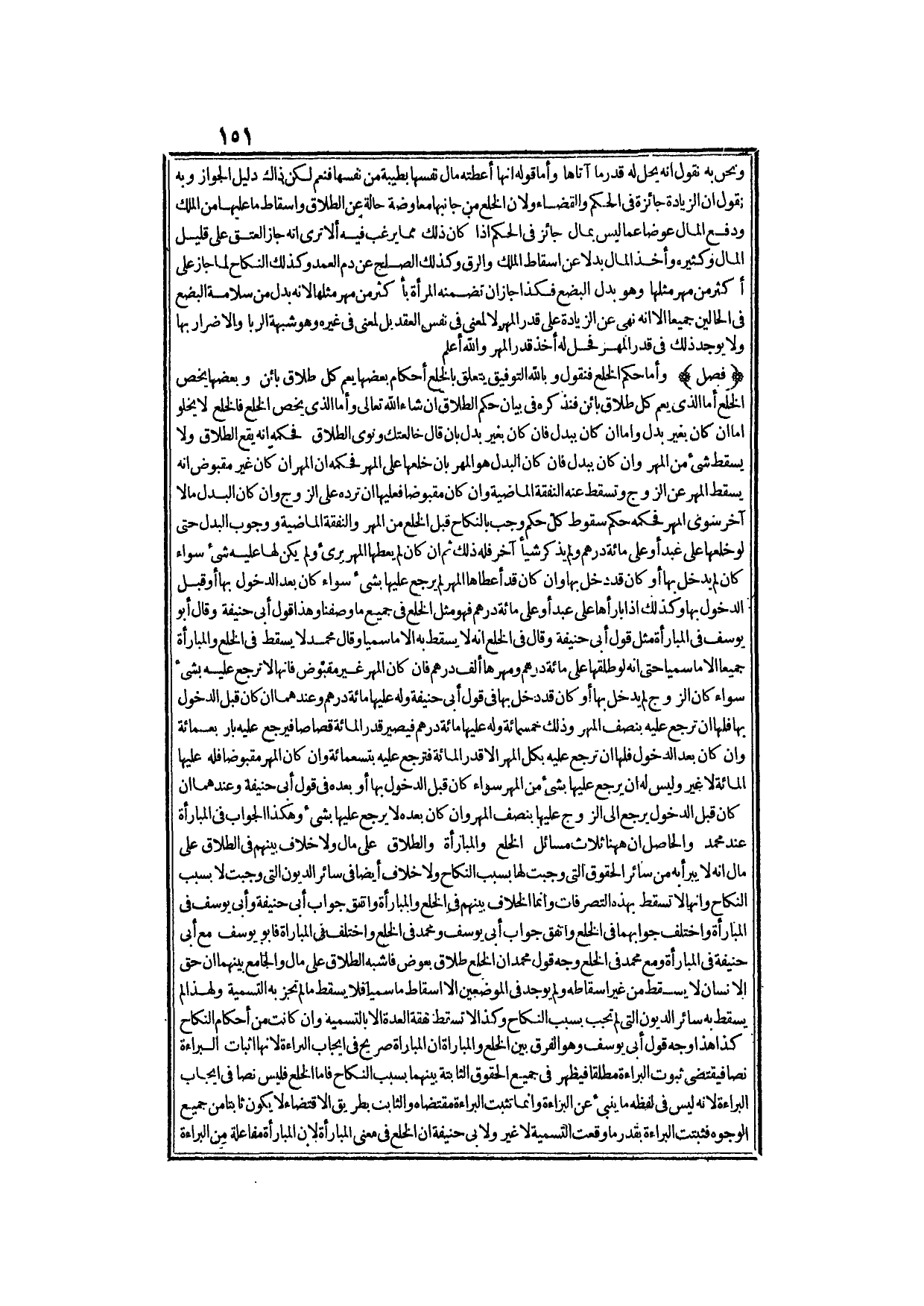 وَأَمَّا إنْ كَانَ بِبَدَلٍ فَإِنْ كَانَ بِغَيْرِ بَدَلٍ بِأَنْ قَالَ: خَالَعْتكِ، وَنَوَى الطَّلَاقَ فَحُكْمُهُ أَنَّهُ يَقَعُ الطَّلَاقُ، وَلَا يَسْقُطُ شَيْءٌ مِنْ الْمَهْرِ، وَإِنْ كَانَ بِبَدَلٍ فَإِنْ كَانَ الْبَدَلُ هُوَ الْمَهْرُ بِأَنْ خَلَعَهَا عَلَى الْمَهْرِ فَحُكْمُهُ أَنَّ الْمَهْرَ إنْ كَانَ غَيْرَ مَقْبُوضٍ أَنَّهُ يَسْقُطُ الْمَهْرُ عَنْ الزَّوْجِ، وَتَسْقُطُ عَنْهُ النَّفَقَةُ الْمَاضِيَةُ، وَإِنْ كَانَ مَقْبُوضًا فَعَلَيْهَا أَنْ تَرُدَّهُ عَلَى الزَّوْجِ، وَإِنْ كَانَ الْبَدَلُ مَالًا آخَرَ سِوَى الْمَهْرِ فَحُكْمُهُ حُكْمُ سُقُوطِ كُلِّ حُكْمٍ، وَجَبَ بِالنِّكَاحِ قَبْلَ الْخُلْعِ مِنْ الْمَهْرِ، وَالنَّفَقَةِ الْمَاضِيَةِ، وَوُجُوبِ الْبَدَلِ حَتَّى لَوْ خَلَعَهَا عَلَى عَبْدٍ أَوْ عَلَى مِائَةِ دِرْهَمٍ، وَلَمْ يَذْكُرْ شَيْئًا آخَرَ فَلَهُ ذَلِكَ ثُمَّ إنْ كَانَ لَمْ يُعْطِهَا الْمَهْرَ بَرِئَ، وَلَمْ يَكُنْ لَهَا عَلَيْهِ شَيْءٌ سَوَاءٌ كَانَ لَمْ يَدْخُلْ بِهَا أَوْ كَانَ قَدْ دَخَلَ بِهَا، وَإِنْ كَانَ قَدْ أَعْطَاهَا الْمَهْرَ لَمْ يَرْجِعْ عَلَيْهَا بِشَيْءٍ سَوَاءٌ كَانَ بَعْدَ الدُّخُولِ بِهَا أَوْ قَبْلَ الدُّخُولِ بِهَا، وَكَذَلِكَ إذَا بَارَأَهَا عَلَى عَبْدٍ أَوْ عَلَى مِائَةِ دِرْهَمٍ فَهُوَ مِثْلُ الْخُلْعِ فِي جَمِيعِ مَا وَصَفْنَا، وَهَذَا قَوْلُ أَبِي حَنِيفَةَ.