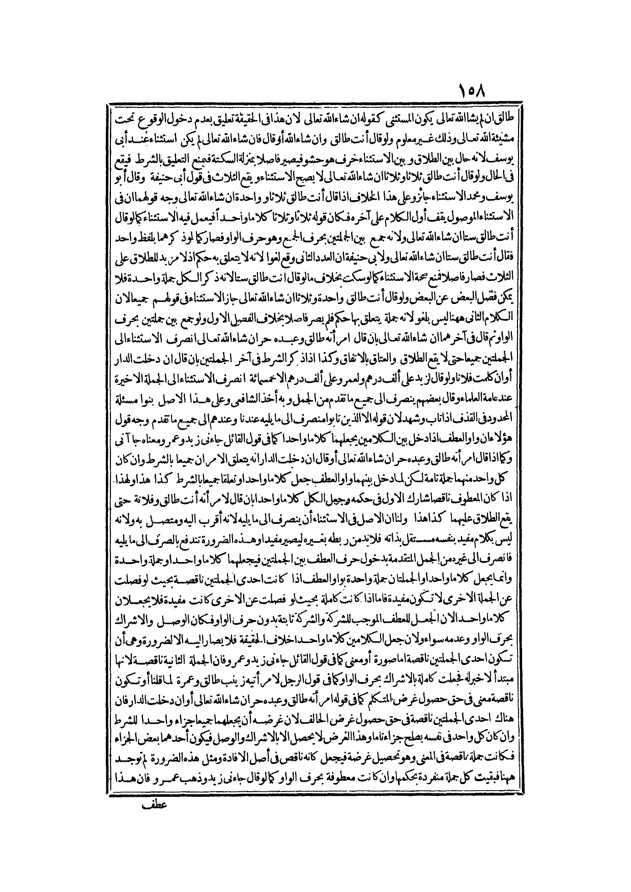 وَجْهُ قَوْلِ هَؤُلَاءِ أَنَّ وَاوَ الْعَطْفِ إذَا دَخَلَ بَيْنَ الْكَلَامَيْنِ يَجْعَلُهُمَا كَلَامًا وَاحِدًا كَمَا فِي قَوْلِ الْقَائِلِ جَاءَنِي زَيْدٌ، وَعَمْرٌو مَعْنَاهُ جَاءَانِي، وَكَمَا إذَا قَالَ: امْرَأَتُهُ طَالِقٌ، وَعَبْدُهُ حُرٌّ إنْ شَاءَ اللَّهُ تَعَالَى، أَوْ قَالَ: إنْ دَخَلْتِ الدَّارَ أَنَّهُ يَتَعَلَّقُ الْأَمْرَانِ جَمِيعًا بِالشَّرْطِ، وَإِنْ كَانَ كُلُّ وَاحِدٍ مِنْهُمَا جُمْلَةً تَامَّةً لَكِنْ لَمَّا دَخَلَ بَيْنَهُمَا وَاوُ الْعَطْفِ جُعِلَ كَلَامًا وَاحِدًا، وَتَعَلَّقَا جَمِيعًا بِالشَّرْطِ كَذَا هَذَا، وَلِهَذَا إذَا كَانَ الْمَعْطُوفُ نَاقِصًا شَارَكَ الْأَوَّلَ فِي حُكْمِهِ وَجَعَلَ الْكُلَّ كَلَامًا وَاحِدًا بِأَنْ قَالَ: لِامْرَأَتِهِ أَنْتِ طَالِقٌ، وَفُلَانَةُ حَتَّى يَقَعَ الطَّلَاقُ عَلَيْهِمَا كَذَا هَذَا، وَلَنَا أَنَّ الْأَصْلَ فِي الِاسْتِثْنَاءِ أَنْ يَنْصَرِفَ إلَى مَا يَلِيهِ؛ لِأَنَّهُ أَقْرَبُ إلَيْهِ، وَمُتَّصِلٌ بِهِ؛ وَلِأَنَّهُ لَيْسَ بِكَلَامٍ مُفِيدٍ بِنَفْسِهِ مُسْتَقِلٍّ بِذَاتِهِ، فَلَا بُدَّ مِنْ رَبْطِهِ بِغَيْرِهِ لِيَصِيرَ مُفِيدًا، وَهَذِهِ الضَّرُورَةُ تَنْدَفِعُ بِالصَّرْفِ إلَى مَا يَلِيهِ، فَانْصَرَفَ إلَى غَيْرِهِ مِنْ الْجُمَلِ الْمُتَقَدِّمَةِ بِدُخُولِ حَرْفِ الْعَطْفِ بَيْنَ الْجُمْلَتَيْنِ فَيَجْعَلُهُمَا كَلَامًا وَاحِدًا وَجُمْلَةً وَاحِدَةً، وَإِنَّمَا يُجْعَلُ كَلَامًا وَاحِدًا وَالْجُمْلَتَانِ جُمْلَةً وَاحِدَةً بِوَاوِ الْعَطْفِ إذَا كَانَتْ إحْدَى الْجُمْلَتَيْنِ نَاقِصَةً بِحَيْثُ لَوْ فُصِلَتْ عَنْ الْجُمْلَةِ الْأُخْرَى لَا تَكُونُ مُفِيدَةً،.