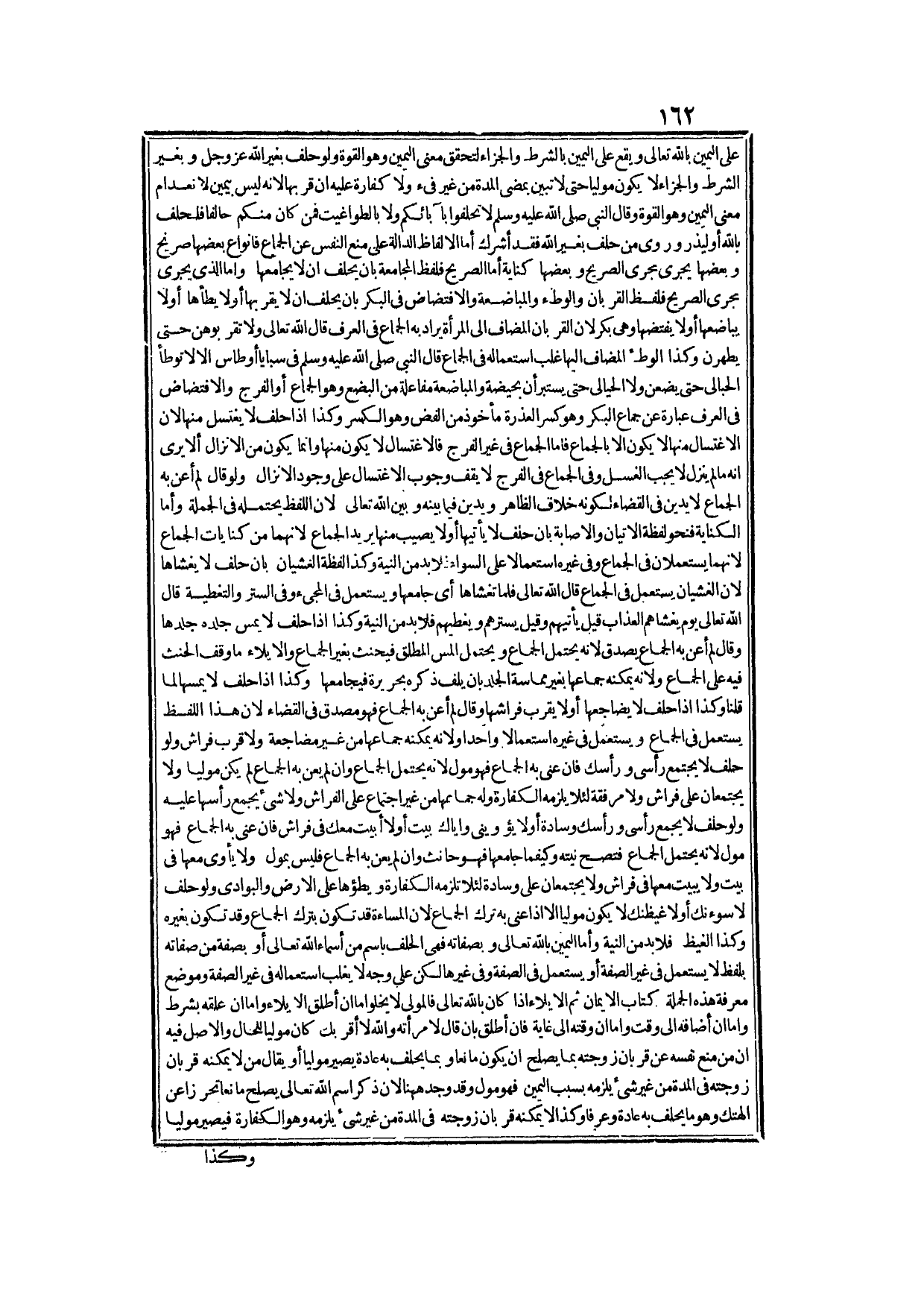 وَقَالَ لَمْ أَعْنِ بِهِ الْجِمَاعَ فَهُوَ مُصَدَّقٌ فِي الْقَضَاءِ؛ لِأَنَّ هَذَا اللَّفْظَ يُسْتَعْمَلُ فِي الْجِمَاعِ، وَيُسْتَعْمَلُ فِي غَيْرِهِ اسْتِعْمَالًا وَاحِدًا؛ وَلِأَنَّهُ يُمْكِنُهُ جِمَاعُهَا مِنْ غَيْرِ مُضَاجَعَةٍ، وَلَا قُرْبِ فِرَاشٍ، وَلَوْ حَلَفَ لَا يَجْتَمِعُ رَأْسِي، وَرَأْسُك فَإِنْ عَنَى بِهِ الْجِمَاعَ فَهُوَ مُولٍ؛ لِأَنَّهُ يُحْتَمَلُ الْجِمَاعُ، وَإِنْ لَمْ يَعْنِ بِهِ الْجِمَاعَ لَمْ يَكُنْ مُولِيًا، وَلَا يَجْتَمِعَانِ عَلَى فِرَاشٍ، وَلَا مِرْفَقَةٍ لِئَلَّا يَلْزَمَهُ الْكَفَّارَةُ، وَلَهُ جِمَاعُهَا مِنْ غَيْرِ اجْتِمَاعٍ عَلَى الْفِرَاشِ، وَلَا شَيْءَ يَجْمَعُ رَأْسَهَا عَلَيْهِ، وَلَوْ حَلَفَ لَا يَجْمَعُ رَأْسِي، وَرَأْسَكِ وِسَادَةٌ أَوْ لَا يُؤْوِينِي، وَإِيَّاكِ بَيْتٌ أَوْ لَا أَبِيت مَعَك فِي فِرَاشٍ فَإِنْ عَنَى الْجِمَاعَ فَهُوَ مُولٍ؛ لِأَنَّهُ يُحْتَمَلُ الْجِمَاعُ فَتَصِحُّ نِيَّتُهُ، وَكَيْفَمَا جَامَعَهَا فَهُوَ حَانِثٌ، وَإِنْ لَمْ يَعْنِ بِهِ الْجِمَاعَ فَلَيْسَ بِمُولٍ، وَلَا يَأْوِي مَعَهَا فِي بَيْتٍ، وَلَا يَبِيتُ مَعَهَا فِي فِرَاشٍ، وَلَا يَجْتَمِعَانِ عَلَى وِسَادَةٍ لِئَلَّا تَلْزَمَهُ الْكَفَّارَةُ، وَيَطَؤُهَا عَلَى الْأَرْضِ وَالْبَوَادِي، وَلَوْ حَلَفَ لَأَسُوءَنَّكِ أَوْ لَأَغِيظَنَّكِ لَا يَكُونُ مُولِيًا إلَّا إذَا عَنَى بِهِ تَرْكَ الْجِمَاعِ؛ لِأَنَّ الْمَسَاءَةَ قَدْ تَكُونُ بِتَرْكِ الْجِمَاعِ وَقَدْ تَكُونُ بِغَيْرِهِ.