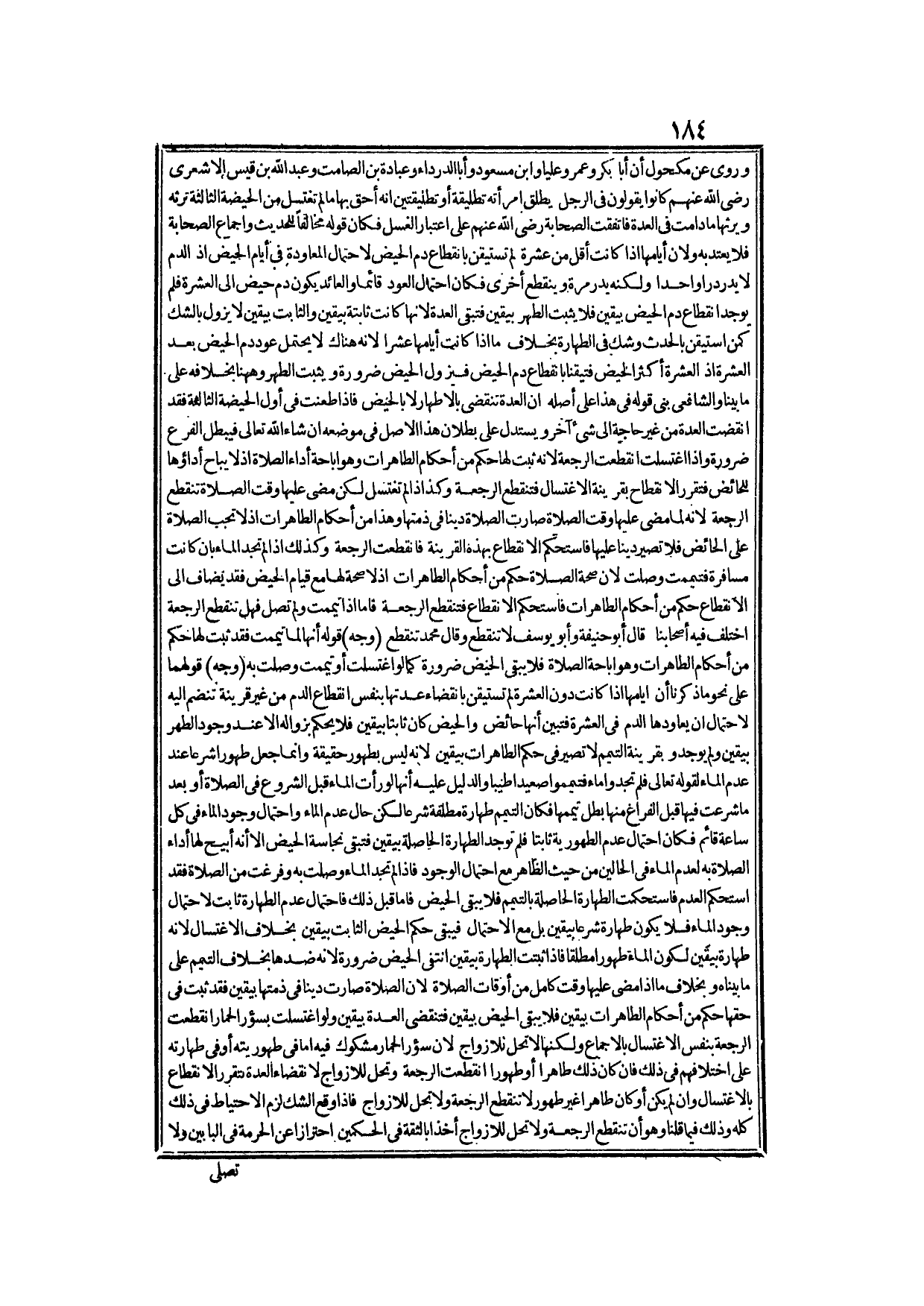 وَرُوِيَ عَنْ مَكْحُولٍ أَنَّ أَبَا بَكْرٍ، وَعُمَرَ، وَعَلِيًّا وَابْنَ مَسْعُودٍ، وَأَبَا الدَّرْدَاءِ، وَعُبَادَةَ بْنَ الصَّامِتِ، وَعَبْدَ اللَّهِ بْنَ قَيْسٍ الْأَشْعَرِيَّ - رَضِيَ اللَّهُ عَنْهُمْ - كَانُوا يَقُولُونَ فِي الرَّجُلِ يُطَلِّقُ امْرَأَتَهُ تَطْلِيقَةً أَوْ تَطْلِيقَتَيْنِ إنَّهُ أَحَقُّ بِهَا مَا لَمْ تَغْتَسِلْ مِنْ الْحَيْضَةِ الثَّالِثَةِ، تَرِثُهُ، وَيَرِثُهَا مَا دَامَتْ فِي الْعِدَّةِ، فَاتَّفَقَتْ الصَّحَابَةُ - رَضِيَ اللَّهُ عَنْهُمْ - عَلَى اعْتِبَارِ الْغُسْلِ فَكَانَ قَوْلُهُ مُخَالِفًا لِلْحَدِيثِ، وَإِجْمَاعِ الصَّحَابَةِ، فَلَا يُعْتَدُّ بِهِ.