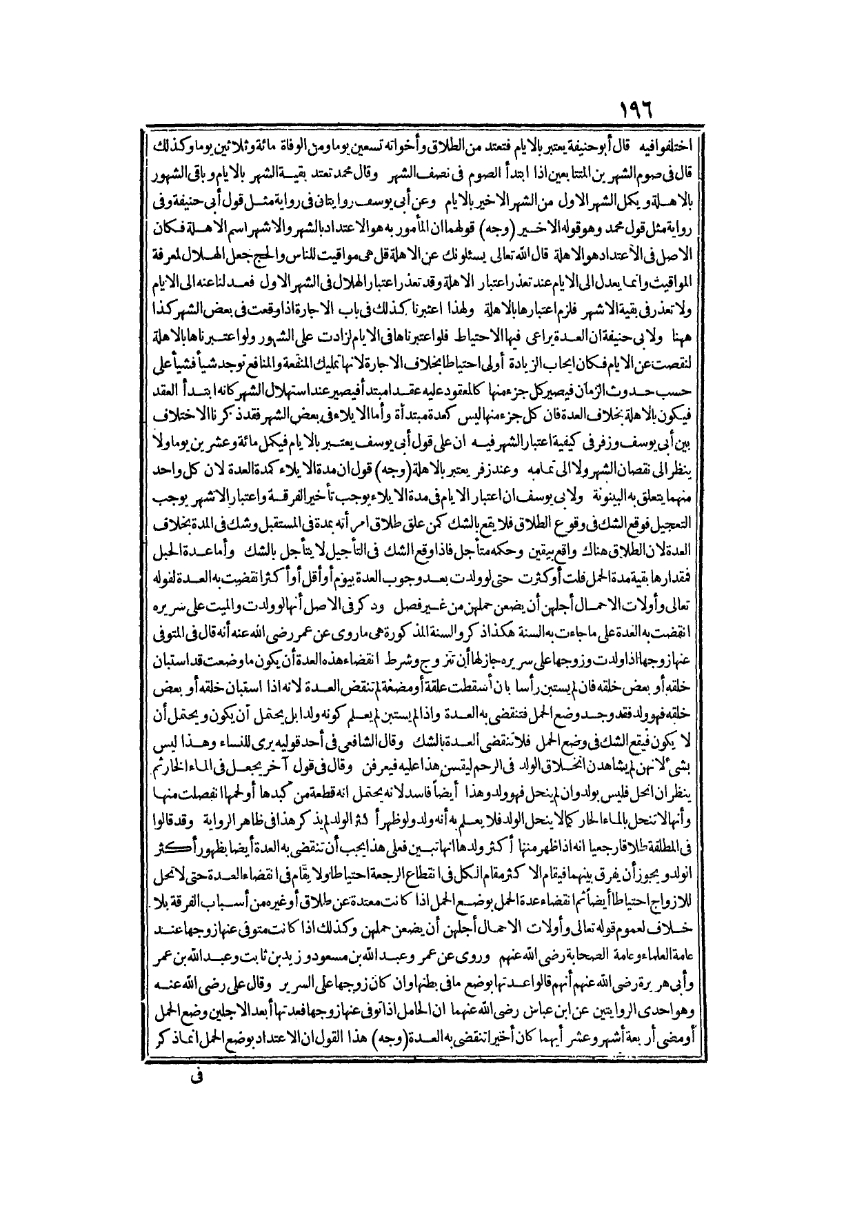 اخْتَلَفُوا فِيهِ، قَالَ أَبُو حَنِيفَةَ يُعْتَبَرُ بِالْأَيَّامِ فَتَعْتَدُّ مِنْ الطَّلَاقِ، وَأَخَوَاتِهِ تِسْعِينَ يَوْمًا، وَمِنْ الْوَفَاةِ مِائَةً، وَثَلَاثِينَ يَوْمًا، وَكَذَلِكَ قَالَ فِي صَوْمِ الشَّهْرَيْنِ الْمُتَتَابِعَيْنِ إذَا ابْتَدَأَ الصَّوْمُ فِي نِصْفِ الشَّهْرِ.