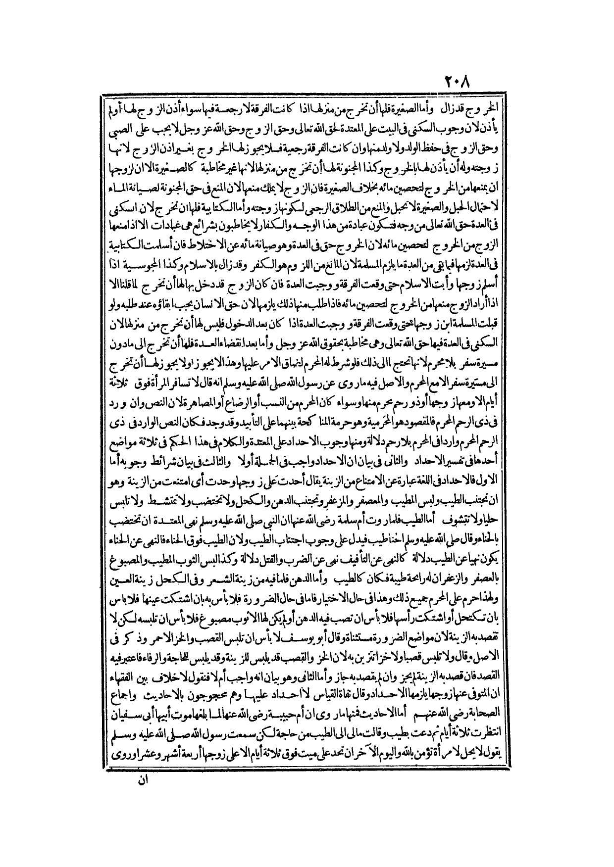 وَقَالَ نُفَاةُ الْقِيَاسِ: لَا إحْدَادَ عَلَيْهَا، وَهُمْ مَحْجُوجُونَ بِالْأَحَادِيثِ وَإِجْمَاعِ الصَّحَابَةِ - رَضِيَ اللَّهُ عَنْهُمْ - أَمَّا الْأَحَادِيثُ فَمِنْهَا مَا رُوِيَ أَنَّ أُمَّ حَبِيبَةَ - رَضِيَ اللَّهُ عَنْهَا - لَمَّا بَلَغَهَا مَوْتُ أَبِيهَا أَبِي سُفْيَانَ انْتَظَرَتْ ثَلَاثَةَ أَيَّامٍ ثُمَّ دَعَتْ بِطِيبٍ.