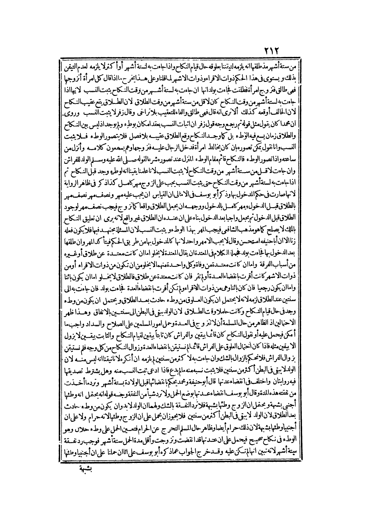 أَوْ نَقُولُ النِّكَاحُ كَانَ قَائِمًا بِيَقِينٍ وَالْفِرَاشُ كَانَ ثَابِتًا بِيَقِينٍ لِقِيَامِ النِّكَاحِ، وَالثَّابِتُ بِيَقِينٍ لَا يَزُولُ إلَّا بِيَقِينٍ مِثْلِهِ فَإِذَا كَانَ احْتِمَالُ الْعُلُوقِ عَلَى الْفِرَاشِ قَائِمًا لَمْ نَسْتَيْقِنْ بِانْقِضَاءِ الْعِدَّةِ وَزَوَالِ النِّكَاحِ مِنْ كُلِّ وَجْهٍ فَلَمْ نَسْتَيْقِنْ بِزَوَالِ الْفِرَاشِ فَلَا نَحْكُمُ بِالزَّوَالِ بِالشَّكِّ، وَإِنْ جَاءَتْ بِهِ لِأَكْثَرَ مِنْ سَنَتَيْنِ لَمْ يَلْزَمْهُ إنْ أَنْكَرَهُ؛ لِأَنَّا تَيَقَّنَّا أَنَّهُ لَيْسَ مِنْهُ؛ لِأَنَّ الْوَلَدَ لَا يَبْقَى فِي الْبَطْنِ أَكْثَرَ مِنْ سَنَتَيْنِ فَلَا يَثْبُتُ نَسَبُهُ مِنْهُ مَا لَمْ يَدَّعِ فَإِذَا ادَّعَى ثَبَتَ النَّسَبُ مِنْهُ، وَهَلْ يُشْتَرَطُ تَصْدِيقُهَا فِيهِ؟ رِوَايَتَانِ، وَاخْتُلِفَ فِي انْقِضَاءِ عِدَّتِهَا.