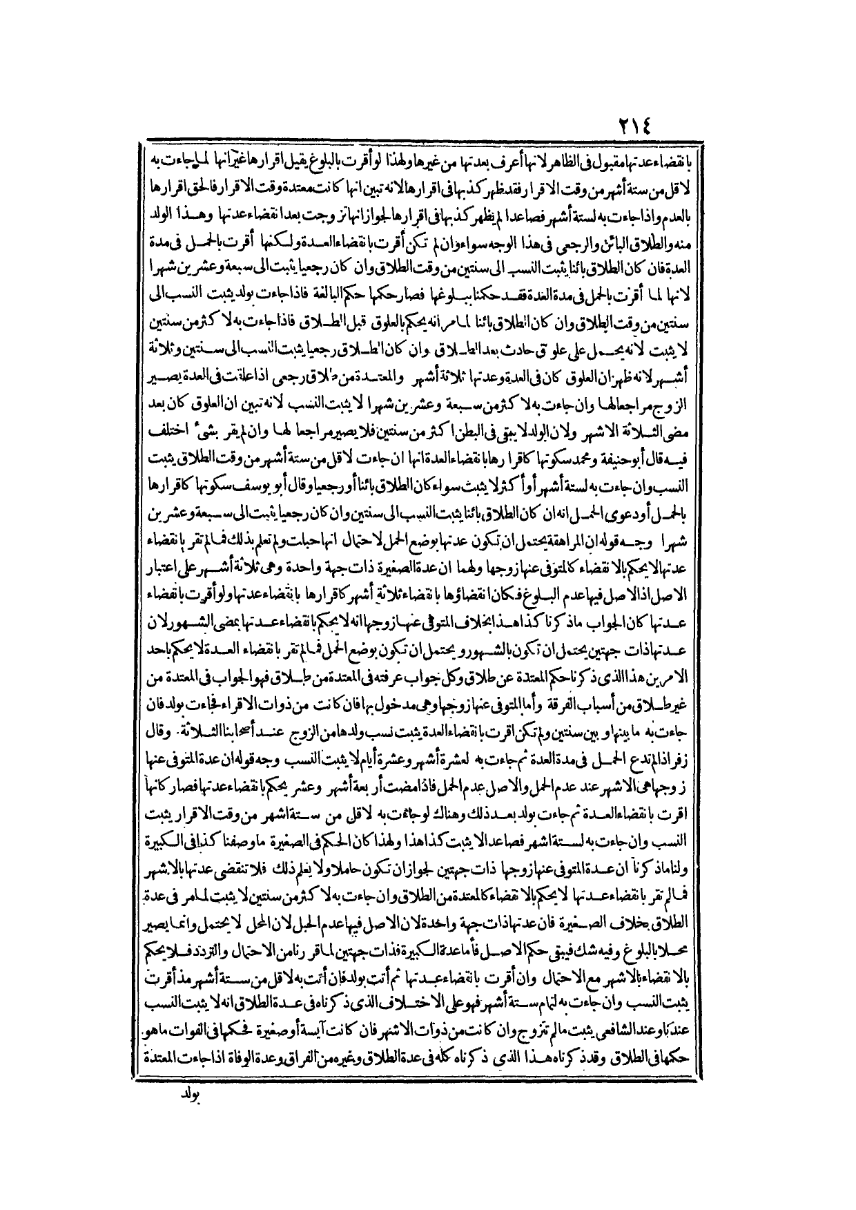 وَإِذَا جَاءَتْ بِهِ لِسِتَّةِ أَشْهُرٍ فَصَاعِدًا لَمْ يَظْهَرْ كَذِبُهَا فِي إقْرَارِهَا لِجَوَازِ أَنَّهَا تَزَوَّجَتْ بَعْدَ انْقِضَاءِ عِدَّتِهَا وَهَذَا الْوَلَدُ مِنْهُ، وَالطَّلَاقُ الْبَائِنُ وَالرَّجْعِيُّ فِي هَذَا الْوَجْهِ سَوَاءٌ، وَإِنْ لَمْ تَكُنْ أَقَرَّتْ بِانْقِضَاءِ الْعِدَّةِ وَلَكِنَّهَا أَقَرَّتْ بِالْحَمْلِ فِي مُدَّةِ الْعِدَّةِ فَإِنْ كَانَ الطَّلَاقُ بَائِنًا يَثْبُتُ النَّسَبُ إلَى سَنَتَيْنِ مِنْ وَقْتِ الطَّلَاقِ وَإِنْ كَانَ رَجْعِيًّا يَثْبُتُ إلَى سَبْعَةٍ وَعِشْرِينَ شَهْرًا؛ لِأَنَّهَا لَمَّا أَقَرَّتْ بِالْحَمْلِ فِي مُدَّةِ الْعِدَّةِ فَقَدْ حَكَمْنَا بِبُلُوغِهَا فَصَارَ حُكْمُهَا حُكْمَ الْبَالِغَةِ فَإِذَا جَاءَتْ بِوَلَدٍ يَثْبُتُ النَّسَبُ إلَى سَنَتَيْنِ مِنْ وَقْتِ الطَّلَاقِ، وَإِنْ كَانَ الطَّلَاقُ بَائِنًا لِمَا مَرَّ أَنَّهُ يُحْكَمُ بِالْعُلُوقِ قَبْلَ الطَّلَاقِ فَإِذَا جَاءَتْ بِهِ لِأَكْثَرَ مِنْ سَنَتَيْنِ لَا يَثْبُتُ لِأَنَّهُ يُحْمَلُ عَلَى عُلُوقٍ حَادِثٍ بَعْدَ الطَّلَاقِ وَإِنْ كَانَ الطَّلَاقُ رَجْعِيًّا يَثْبُتُ النَّسَبُ إلَى سَنَتَيْنِ وَثَلَاثَةِ أَشْهُرٍ؛ لِأَنَّهُ ظَهَرَ أَنَّ الْعُلُوقَ كَانَ فِي الْعِدَّةِ وَعِدَّتُهَا ثَلَاثَةُ أَشْهُرٍ وَالْمُعْتَدَّةُ مِنْ طَلَاقٍ رَجْعِيٍّ إذَا عَلِقَتْ فِي الْعِدَّةِ يَصِيرُ الزَّوْجُ مُرَاجِعًا لَهَا، وَإِنْ جَاءَتْ بِهِ لِأَكْثَرَ مِنْ سَبْعَةٍ وَعِشْرِينَ شَهْرًا لَا يَثْبُتُ النَّسَبُ؛ لِأَنَّهُ تَبَيَّنَ أَنَّ الْعُلُوقَ كَانَ بَعْدَ مُضِيِّ الثَّلَاثَةِ الْأَشْهُرِ وَلِأَنَّ الْوَلَدَ لَا يَبْقَى فِي الْبَطْنِ أَكْثَرَ مِنْ سَنَتَيْنِ فَلَا يَصِيرُ مُرَاجِعًا لَهَا، وَإِنْ لَمْ يُقِرَّ بِشَيْءٍ اُخْتُلِفَ فِيهِ قَالَ أَبُو حَنِيفَةَ وَمُحَمَّدٌ: سُكُوتُهَا كَإِقْرَارِهَا بِانْقِضَاءِ الْعِدَّةِ أَنَّهَا إنْ جَاءَتْ لِأَقَلَّ مِنْ سِتَّةِ أَشْهُرٍ مِنْ وَقْتِ الطَّلَاقِ يَثْبُتُ النَّسَبُ وَإِنْ جَاءَتْ بِهِ لِسِتَّةِ أَشْهُرٍ أَوْ أَكْثَرَ لَا يَثْبُتُ سَوَاءٌ كَانَ الطَّلَاقُ بَائِنًا أَوْ رَجْعِيًّا.