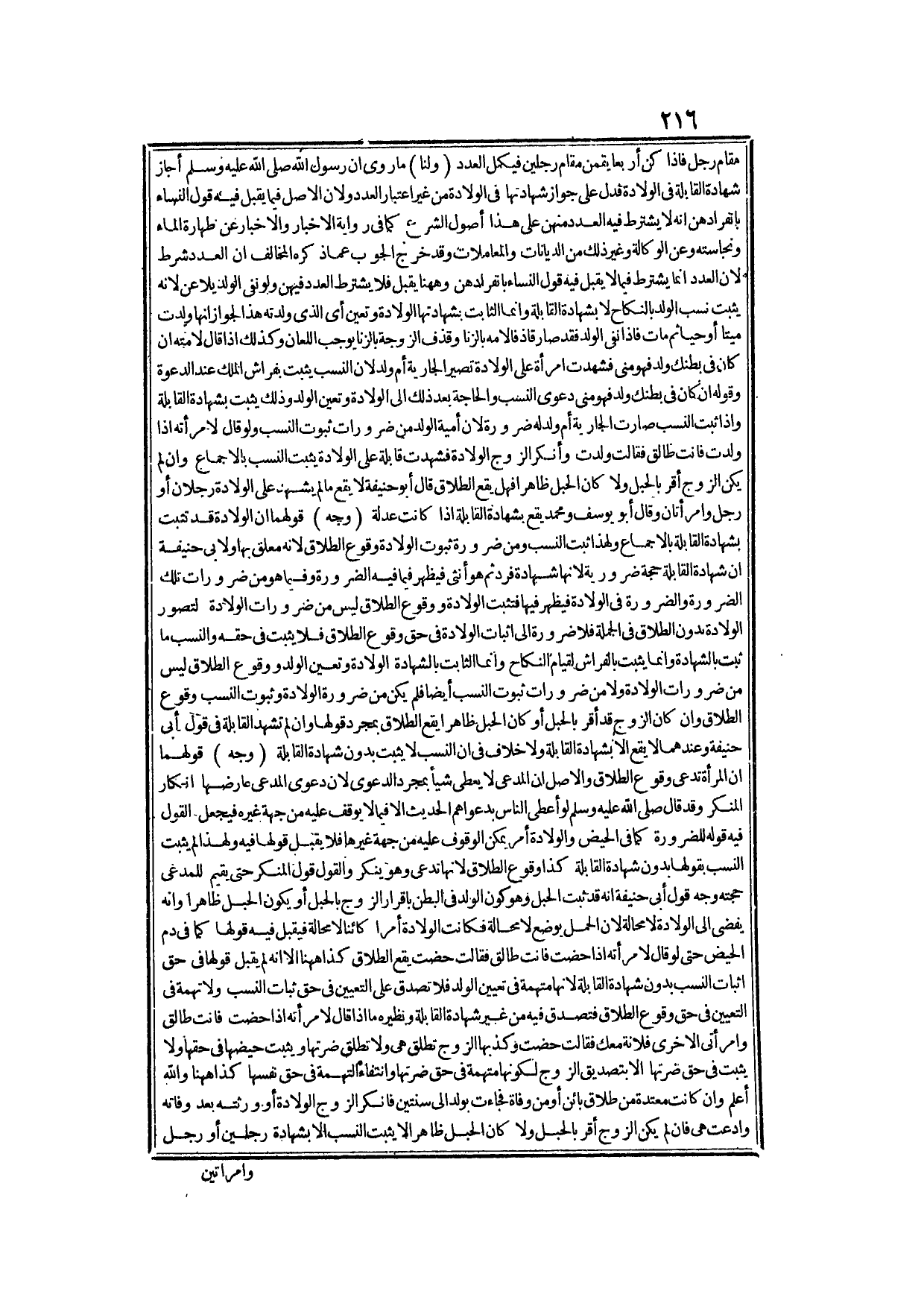 وَالنَّسَبُ مَا ثَبَتَ بِالشَّهَادَةِ وَإِنَّمَا يَثْبُتُ بِالْفِرَاشِ لِقِيَامِ النِّكَاحِ، وَإِنَّمَا الثَّابِتُ بِالشَّهَادَةِ الْوِلَادَةُ، وَتَعَيُّنُ الْوَلَدِ وَوُقُوعُ الطَّلَاقِ لَيْسَ مِنْ ضَرُورَاتِ الْوِلَادَةِ وَلَا مِنْ ضَرُورَاتِ ثُبُوتِ النَّسَبِ أَيْضًا، فَلَمْ يَكُنْ مِنْ ضَرُورَةِ الْوِلَادَةِ وَثُبُوتِ النَّسَبِ وُقُوعُ الطَّلَاقِ، وَإِنْ كَانَ الزَّوْجُ قَدْ أَقَرَّ بِالْحَبَلِ أَوْ كَانَ الْحَبَلُ ظَاهِرًا يَقَعُ الطَّلَاقُ بِمُجَرَّدِ قَوْلِهَا وَإِنْ لَمْ تَشْهَدْ الْقَابِلَةُ فِي قَوْلِ أَبِي حَنِيفَةَ.