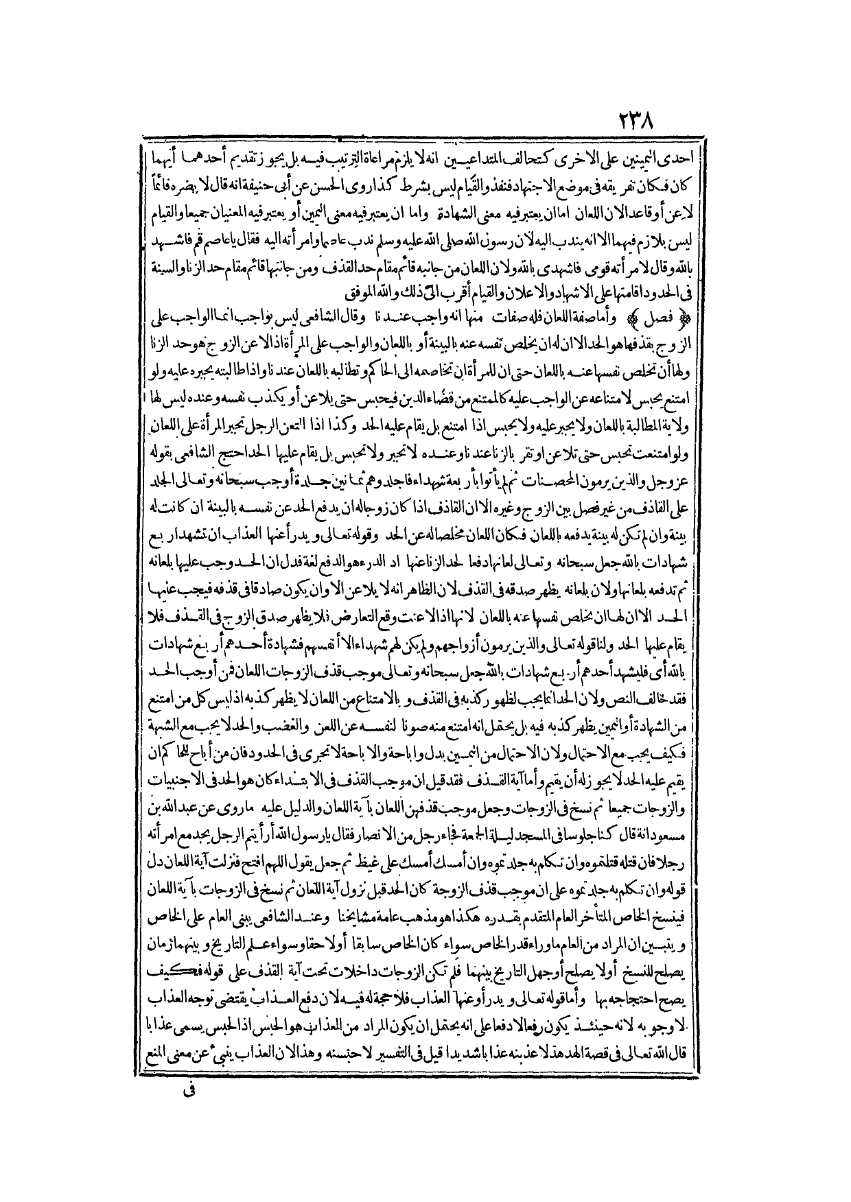 وَأَمَّا صِفَةُ اللِّعَانِ فَلَهُ صِفَاتٌ مِنْهَا أَنَّهُ وَاجِبٌ عِنْدَنَا، وَقَالَ الشَّافِعِيُّ: لَيْسَ بِوَاجِبٍ إنَّمَا الْوَاجِبُ عَلَى الزَّوْجِ بِقَذْفِهَا هُوَ الْحَدُّ إلَّا أَنَّ لَهُ أَنْ يُخَلِّصَ نَفْسَهُ عَنْهُ بِالْبَيِّنَةِ أَوْ بِاللِّعَانِ.