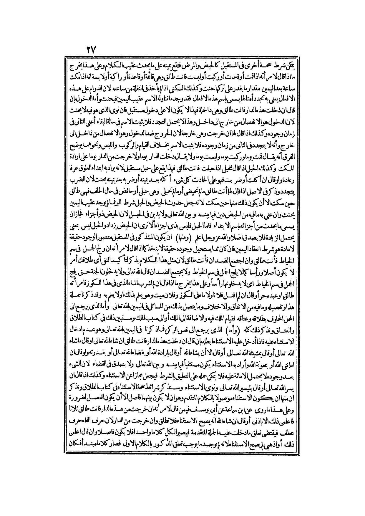يُمْكِنُ شَرْطُ صِحَّةٍ أُخْرَى فِي الْمُسْتَقْبَلِ كَالْحَيْضِ وَالْمَرَضِ فَتَقَعُ يَمِينُهُ عَلَى مَا يَحْدُثُ عَقِيبَ الْكَلَامِ وَعَلَى هَذَا يَخْرُجُ مَا إذَا قَالَ لِامْرَأَتِهِ إذَا قُمْتِ أَوْ قَعَدْتِ أَوْ رَكِبْتِ أَوْ لَبِسْتِ فَأَنْتِ طَالِقٌ وَهِيَ قَائِمَةٌ أَوْ قَاعِدَةٌ أَوْ رَاكِبَةٌ أَوْ لَابِسَةٌ أَنَّهُ إذَا مَكَثَ سَاعَةً بَعْدَ الْيَمِينِ مِقْدَارَ مَا يَقْدِرُ عَلَى تَرْكِهَا حَنِثَ وَكَذَلِكَ السُّكْنَى إذَا لَمْ يَأْخُذْ فِي النَّقْلَةِ مِنْ سَاعَتِهِ لِأَنَّ الدَّوَامَ عَلَى هَذِهِ الْأَفْعَالِ يُعْنَى بِهِ تَجَدُّدُ أَمْثَالِهَا يُسَمَّى بِاسْمِ هَذِهِ الْأَفْعَالِ فَقَدْ وُجِدَ مَا تَنَاوَلَهُ الِاسْمُ عَقِيبَ الْيَمِينِ فَيَحْنَثُ.
