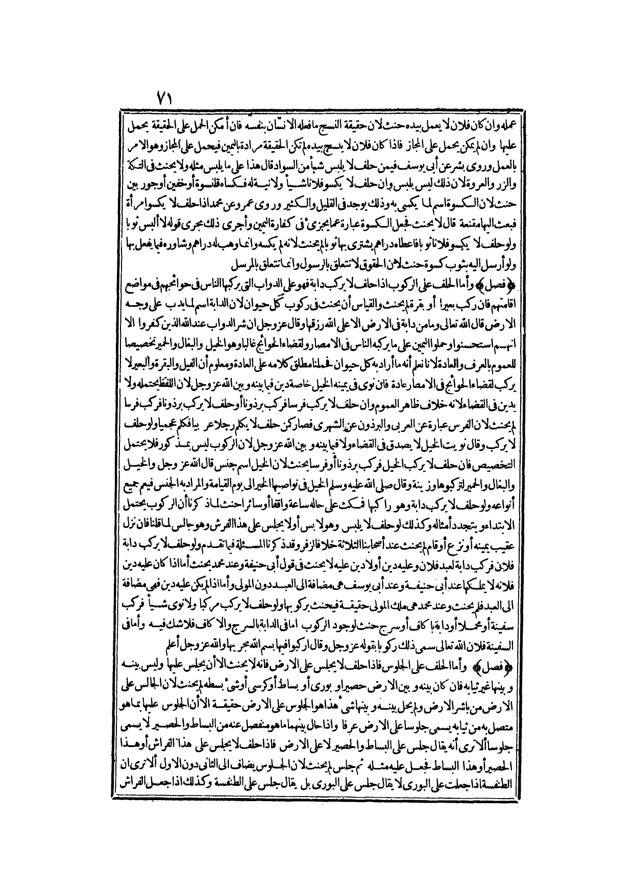 وَقَالَ عَزَّ وَجَلَّ: {إِنَّ شَرَّ الدَّوَابِّ عِنْدَ اللَّهِ الَّذِينَ كَفَرُوا} [الأنفال: 55] إلَّا أَنَّهُمْ اسْتَحْسَنُوا وَحَمَلُوا الْيَمِينَ عَلَى مَا يَرْكَبُهُ النَّاسُ فِي الْأَمْصَارِ وَلِقَضَاءِ الْحَوَائِجِ غَالِبًا وَهُوَ الْخَيْلُ وَالْبِغَالُ وَالْحَمِيرُ تَخْصِيصًا لِلْعُمُومِ بِالْعُرْفِ وَالْعَادَةِ لِأَنَّا نَعْلَمُ أَنَّهُ مَا أَرَادَ بِهِ كُلَّ حَيَوَانٍ فَحَمَلْنَا مُطْلَقَ كَلَامِهِ عَلَى الْعَادَةِ وَمَعْلُومٌ أَنَّ الْفِيلَ وَالْبَقَرَةَ وَالْبَعِيرَ لَا يُرْكَبُ لِقَضَاءِ الْحَوَائِجِ فِي الْأَمْصَارِ عَادَةً فَإِنْ نَوَى فِي يَمِينِهِ الْخَيْلَ خَاصَّةً دِينَ فِيمَا بَيْنَهُ وَبَيْنَ اللَّهِ عَزَّ وَجَلَّ لِأَنَّ اللَّفْظَ يَحْتَمِلُهُ وَلَا يَدِينُ فِي الْقَضَاءِ لِأَنَّهُ خِلَافُ ظَاهِرِ الْعُمُومِ وَإِنْ حَلَفَ لَا يَرْكَبُ فَرَسًا فَرَكِبَ بِرْذَوْنًا أَوْ حَلَفَ لَا يَرْكَبُ بِرْذَوْنًا فَرَكِبَ فَرَسًا لَمْ يَحْنَثْ لِأَنَّ الْفَرَسَ عِبَارَةٌ عَنْ الْعَرَبِيِّ وَالْبِرْذَوْنَ عَنْ الشَّهْرِيِّ فَصَارَ كَمَنْ حَلَفَ لَا يُكَلِّمُ رَجُلًا عَرَبِيًّا فَكَلَّمَ عَجَمِيًّا.