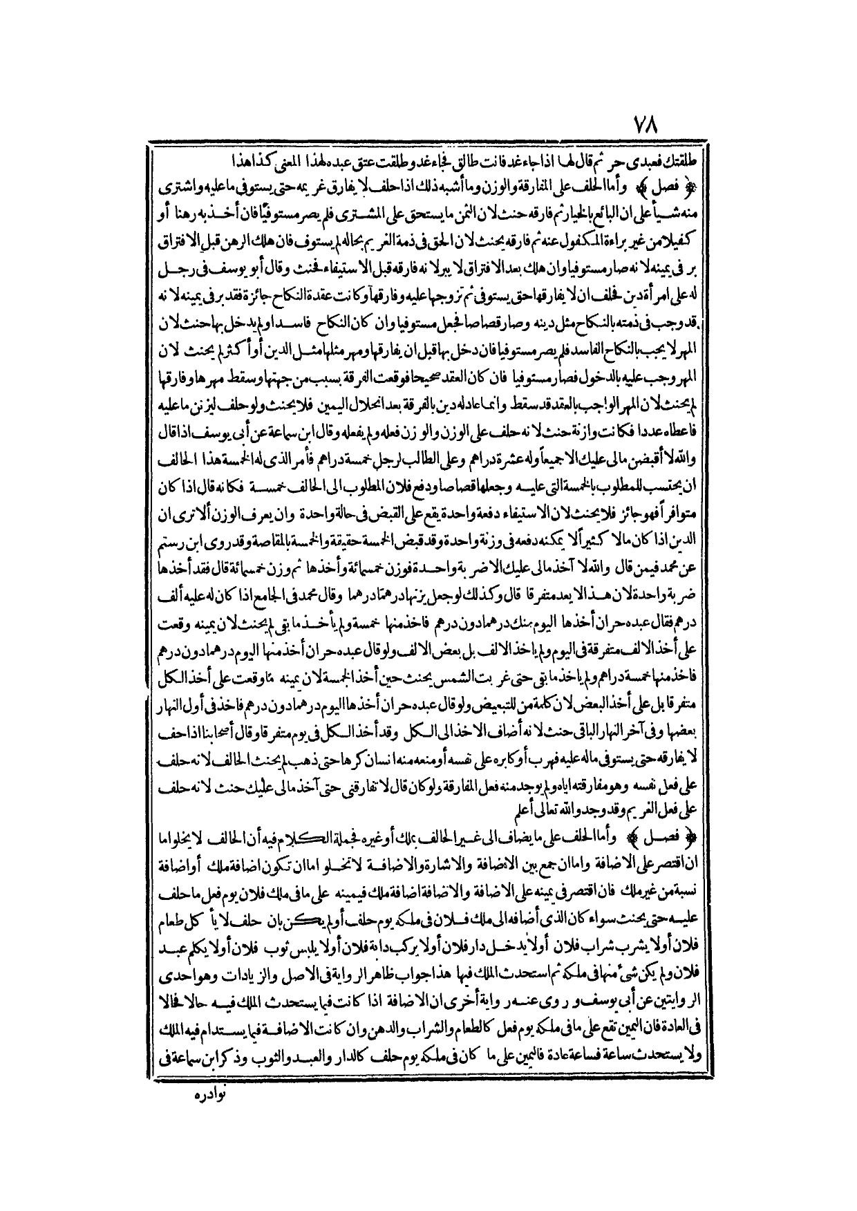 [فَصْلٌ فِي الْحَلِفِ عَلَى الْمُفَارَقَةِ وَالْوَزْنِ وَمَا أَشْبَهَ ذَلِكَ]