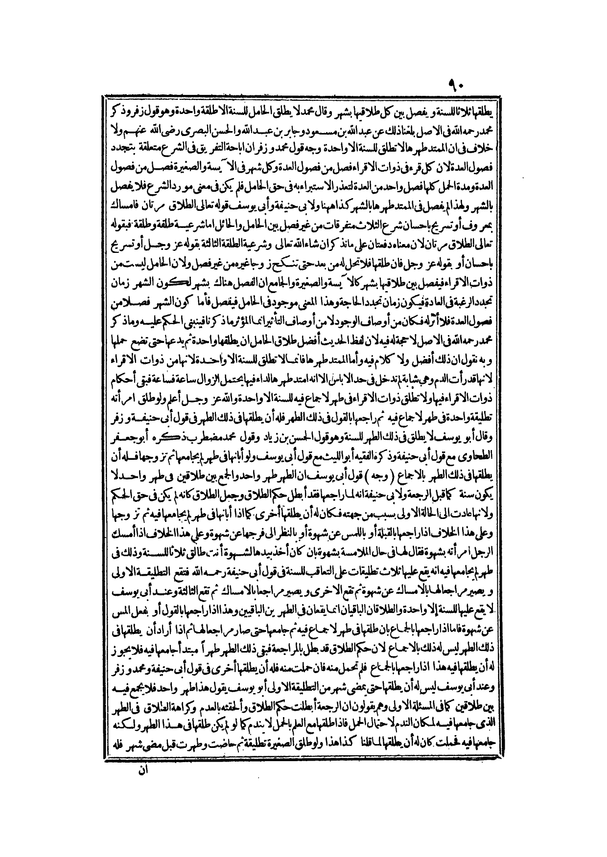 فَأَمَّا كَوْنُ الشَّهْرِ فَصْلًا مِنْ فُصُولِ الْعِدَّةِ فَلَا أَثَرَ لَهُ فَكَانَ مِنْ أَوْصَافِ الْوُجُودِ لَا مِنْ أَوْصَافِ التَّأْثِيرِ إنَّمَا الْمُؤَثِّرُ مَا ذَكَرْنَا فَيَنْبَنِي الْحُكْمُ عَلَيْهِ وَمَا ذَكَرَ مُحَمَّدٌ - رَحِمَهُ اللَّهُ - فِي الْأَصْلِ لَا حُجَّةَ لَهُ فِيهِ لِأَنَّ لَفْظَ الْحَدِيثِ «أَفْضَلُ طَلَاقِ الْحَامِلِ أَنْ يُطَلِّقَهَا وَاحِدَةً ثُمَّ يَدَعَهَا حَتَّى تَضَعَ حَمْلَهَا» وَبِهِ نَقُولُ إنَّ ذَلِكَ أَفْضَلُ وَلَا كَلَامَ فِيهِ وَأَمَّا الْمُمْتَدُّ طُهْرُهَا فَإِنَّمَا لَا تَطْلُقُ لِلسَّنَةِ إلَّا وَاحِدَةً لِأَنَّهَا مِنْ ذَوَاتِ الْأَقْرَاءِ لِأَنَّهَا قَدْ رَأَتْ الدَّمَ وَهِيَ شَابَّةٌ لَمْ تَدْخُلْ فِي حَدِّ الْإِيَاسِ إلَّا أَنَّهُ امْتَدَّ طُهْرُهَا لِدَاءٍ فِيهَا يَحْتَمِلُ الزَّوَالَ سَاعَةً فَسَاعَةً فَبَقِيَ أَحْكَامُ ذَوَاتِ الْأَقْرَاءِ فِيهَا وَلَا تَطْلُقُ ذَوَاتُ الْأَقْرَاءِ فِي طُهْرٍ لَا جِمَاعَ فِيهِ لِلسُّنَّةِ إلَّا وَاحِدَةً وَاَللَّهُ عَزَّ وَجَلَّ أَعْلَمُ، وَلَوْ طَلَّقَ امْرَأَتَهُ تَطْلِيقَةً وَاحِدَةً فِي طُهْرٍ لَا جِمَاعَ فِيهِ ثُمَّ رَاجَعَهَا بِالْقَوْلِ فِي ذَلِكَ الطُّهْرِ فَلَهُ أَنْ يُطَلِّقَهَا فِي ذَلِكَ الطُّهْرِ فِي قَوْلِ أَبِي حَنِيفَةَ وَزُفَرَ.