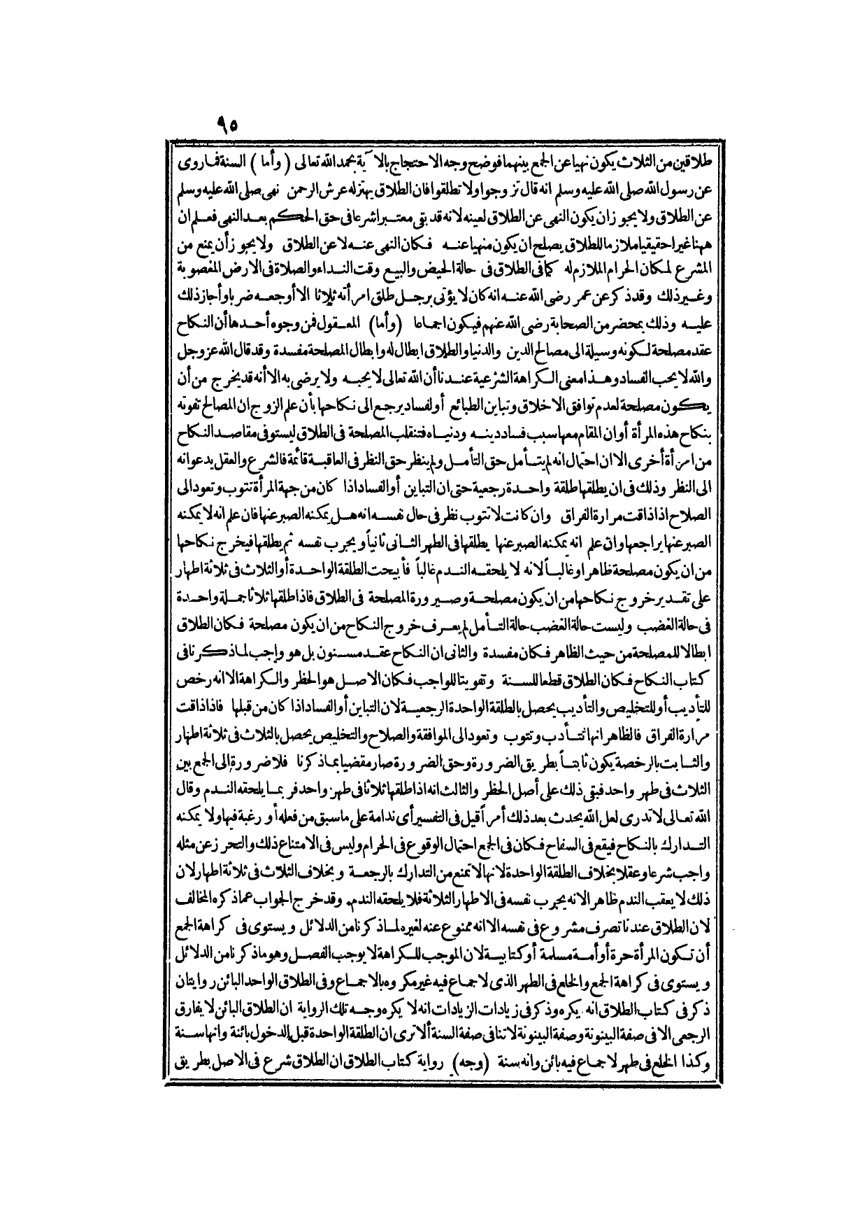 وَالثَّانِي أَنَّ النِّكَاحَ عَقْدٌ مَسْنُونٌ بَلْ هُوَ وَاجِبٌ لِمَا ذَكَرْنَا فِي كِتَابِ النِّكَاحِ فَكَانَ الطَّلَاقُ قَطْعًا لِلسُّنَّةِ وَتَفْوِيتًا لِلْوَاجِبِ فَكَانَ الْأَصْلُ هُوَ الْحَظْرُ وَالْكَرَاهَةُ إلَّا أَنَّهُ رُخِّصَ لِلتَّأْدِيبِ أَوْ لِلتَّخْلِيصِ وَالتَّأْدِيبُ يَحْصُلُ بِالطَّلْقَةِ الْوَاحِدَةِ الرَّجْعِيَّةِ لِأَنَّ التَّبَايُنَ أَوْ الْفَسَادَ إذَا كَانَ مِنْ قِبَلِهَا فَإِذَا ذَاقَتْ مَرَارَةَ الْفِرَاقِ فَالظَّاهِرُ أَنَّهَا تَتَأَدَّبُ وَتَتُوبُ وَتَعُودُ إلَى الْمُوَافَقَةِ وَالصَّلَاحِ، وَالتَّخْلِيصُ يَحْصُلُ بِالثَّلَاثِ فِي ثَلَاثَةِ أَطْهَارٍ وَالثَّابِتُ بِالرُّخْصَةِ يَكُونُ ثَابِتًا بِطَرِيقِ الضَّرُورَةِ، وَحَقُّ الضَّرُورَةِ صَارَ مَقْضِيًّا بِمَا ذَكَرْنَا فَلَا ضَرُورَةَ إلَى الْجَمْعِ بَيْنَ الثَّلَاثِ فِي طُهْرٍ وَاحِدٍ فَبَقِيَ ذَلِكَ عَلَى أَصْلِ الْحَظْرِ، وَالثَّالِثُ أَنَّهُ إذَا طَلَّقَهَا ثَلَاثًا فِي طُهْرٍ وَاحِدٍ فَرُبَّمَا يَلْحَقُهُ النَّدَمُ، وَقَالَ اللَّهُ تَعَالَى: {لا تَدْرِي لَعَلَّ اللَّهَ يُحْدِثُ بَعْدَ ذَلِكَ أَمْرًا} [الطلاق: 1] قِيلَ فِي التَّفْسِيرِ أَيْ نَدَامَةً عَلَى مَا سَبَقَ مِنْ فِعْلِهِ أَوْ رَغْبَةً فِيهَا، وَلَا يُمْكِنُهُ التَّدَارُكُ بِالنِّكَاحِ فَيَقَعُ فِي السِّفَاحِ فَكَانَ فِي الْجَمْعِ احْتِمَالُ الْوُقُوعِ فِي الْحَرَامِ وَلَيْسَ فِي الِامْتِنَاعِ ذَلِكَ، وَالتَّحَرُّزُ عَنْ مِثْلِهِ وَاجِبٌ شَرْعًا وَعَقْلًا بِخِلَافِ الطَّلْقَةِ الْوَاحِدَةِ لِأَنَّهَا لَا تَمْنَعُ مِنْ التَّدَارُكِ بِالرَّجْعَةِ وَبِخِلَافِ الثَّلَاثِ فِي ثَلَاثَةِ أَطْهَارٍ لِأَنَّ ذَلِكَ لَا يُعَقِّبُ النَّدَمَ ظَاهِرٌ إلَّا أَنَّهُ يُجَرِّبُ نَفْسَهُ فِي الْأَطْهَارِ الثَّلَاثَةِ فَلَا يَلْحَقُهُ النَّدَمُ.