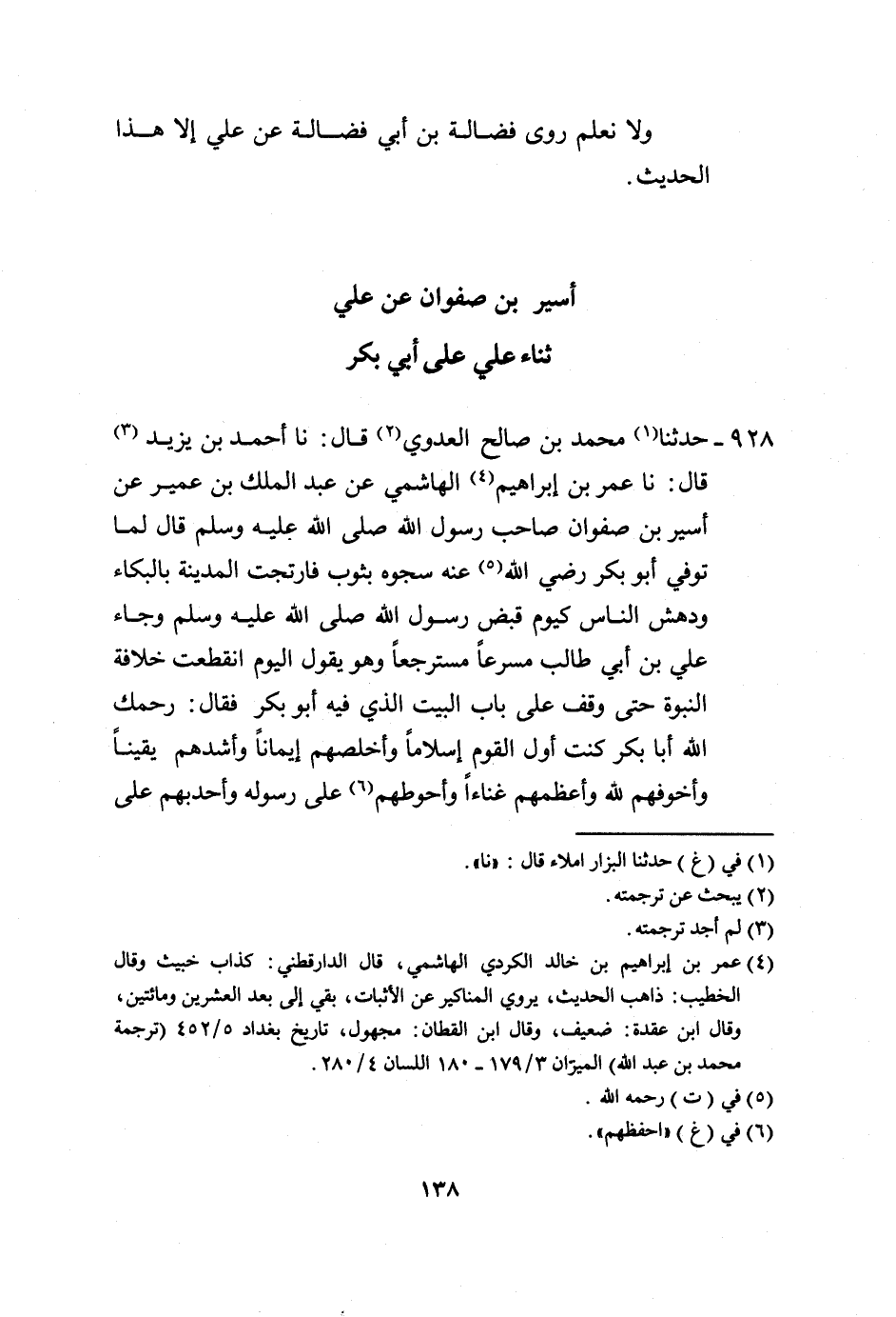 §أُسَيْرُ بْنُ صَفْوَانَ، عَنْ عَلِيٍّ ثَنَاءُ عَلِيٍّ عَلَى أَبِي بَكْرٍ