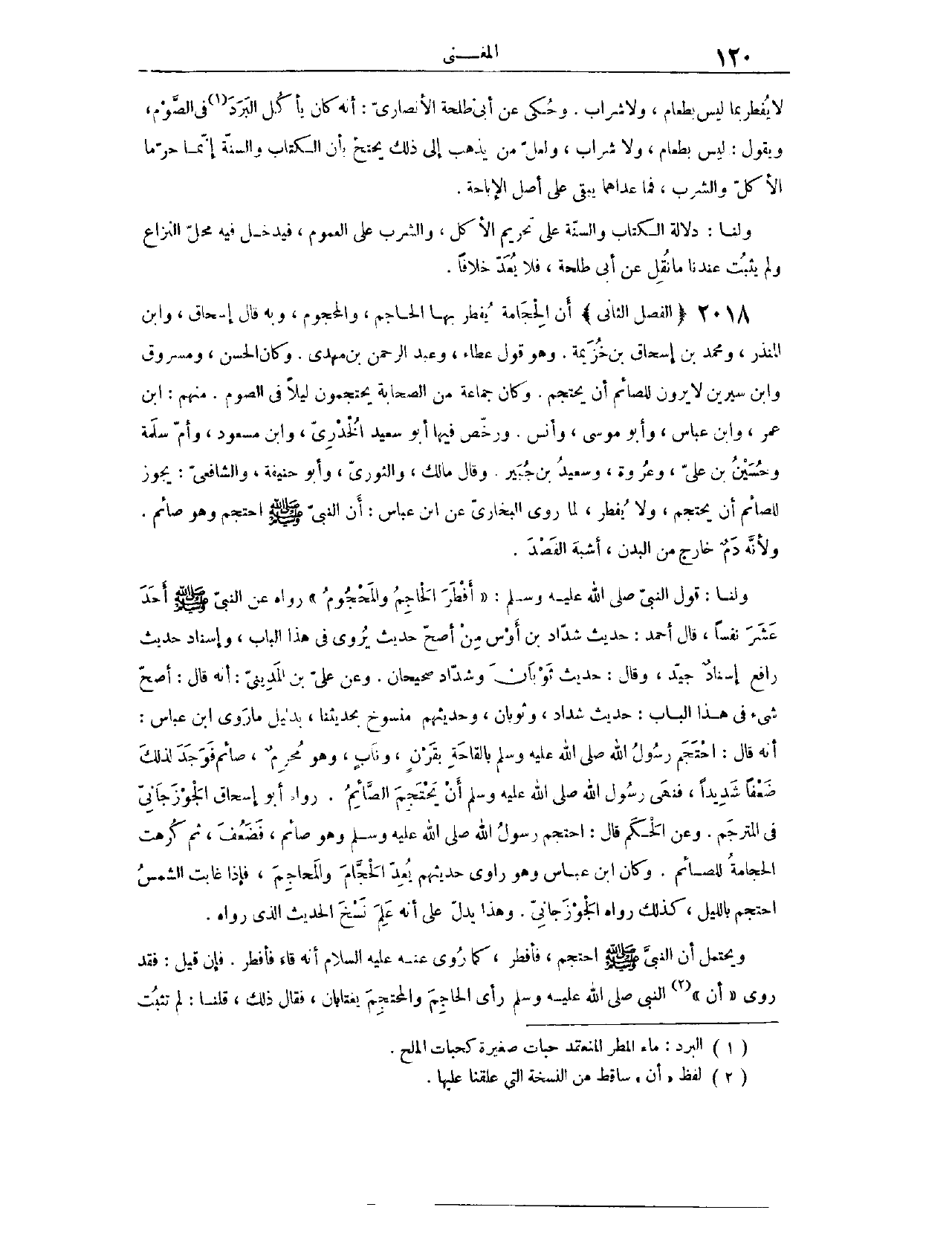 (٢٠١٩) الْفَصْلُ الثَّانِي، أَنَّ الْحِجَامَةَ يُفْطِرُ بِهَا الْحَاجِمُ وَالْمَحْجُومُ. وَبِهِ قَالَ إِسْحَاقُ، وَابْنُ الْمُنْذِرِ، وَمُحَمَّدُ بْنُ إِسْحَاقَ بْنِ خُزَيْمَةَ. وَهُوَ قَوْلُ عَطَاءٍ، وَعَبْدِ الرَّحْمَنِ بْنِ مَهْدِيٍّ. وَكَانَ الْحَسَنُ، وَمَسْرُوقٌ، وَابْنُ سِيرِينَ، لَا يَرَوْنَ لِلصَّائِمِ أَنْ يَحْتَجِمَ.