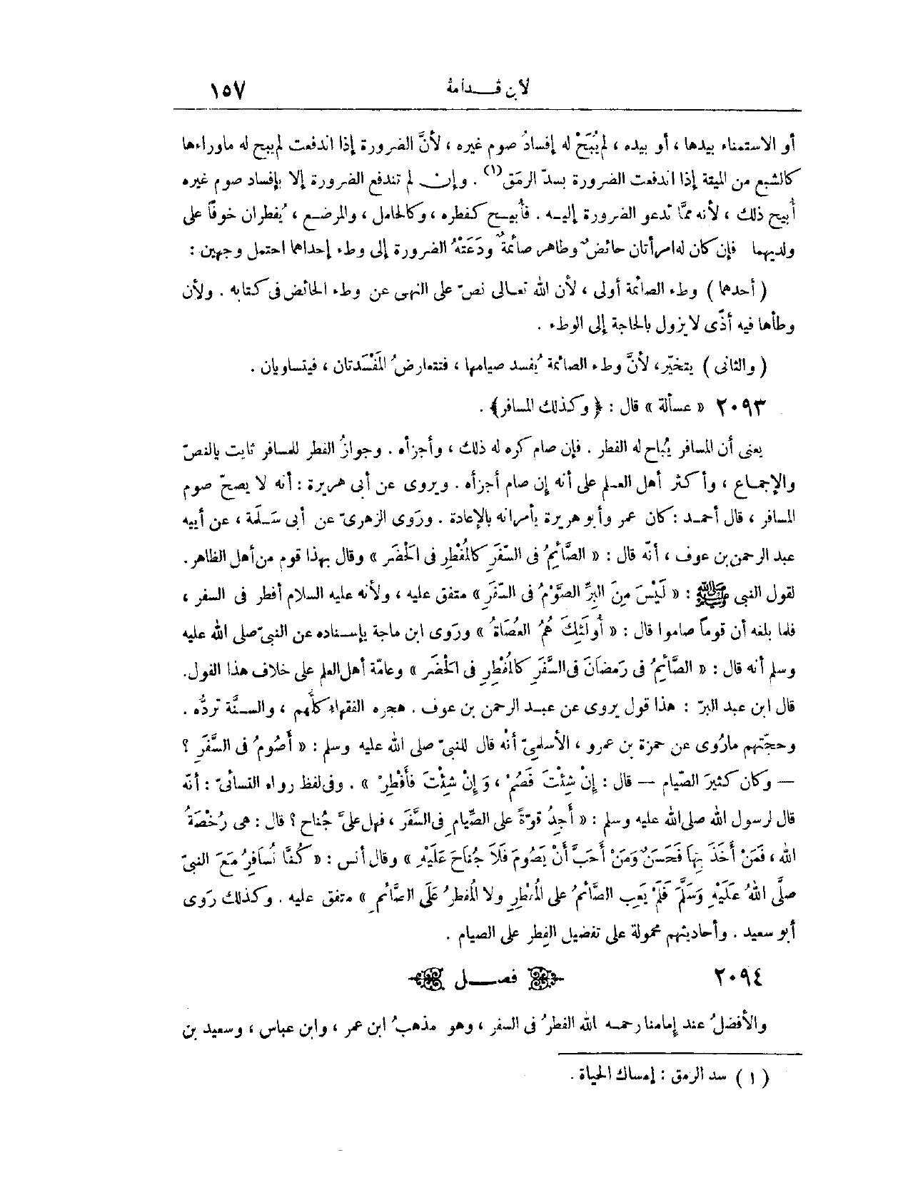 (٢٠٩٥) فَصْلٌ: وَالْأَفْضَلُ عِنْدَ إمَامِنَا، - رَحِمَهُ اللَّهُ -، الْفِطْرُ فِي السَّفَرِ، وَهُوَ مَذْهَبُ ابْنِ عُمَرَ، وَابْنِ عَبَّاسٍ، وَسَعِيدِ بْنِ