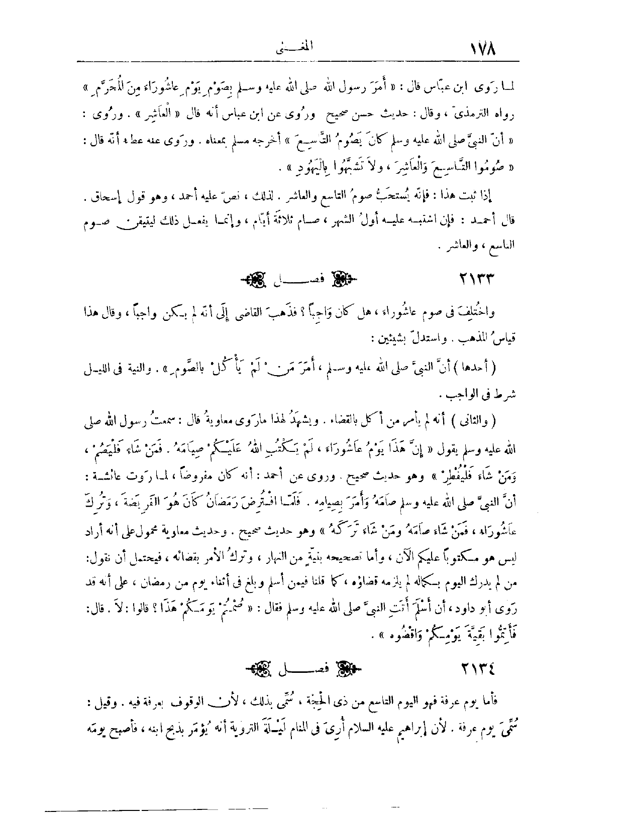 فَصْلٌ: وَاخْتُلِفَ فِي صَوْمِ عَاشُورَاءَ، هَلْ كَانَ وَاجِبًا؟ فَذَهَبَ الْقَاضِي إلَى أَنَّهُ لَمْ يَكُنْ وَاجِبًا. وَقَالَ: هَذَا قِيَاسُ الْمَذْهَبِ. وَاسْتَدَلَّ بِشَيْئَيْنِ؛ أَحَدُهُمَا، «أَنَّ النَّبِيَّ - صَلَّى اللَّهُ عَلَيْهِ وَسَلَّمَ - أَمَرَ مَنْ لَمْ يَأْكُلْ» بِالصَّوْمِ، وَالنِّيَّةُ فِي اللَّيْلِ شَرْطٌ فِي الْوَاجِبِ. وَالثَّانِي: أَنَّهُ لَمْ يَأْمُرْ مَنْ أَكَلَ بِالْقَضَاءِ، وَيَشْهَدُ لِهَذَا مَا رَوَى مُعَاوِيَةُ قَالَ: سَمِعْت رَسُولَ اللَّهِ - صَلَّى اللَّهُ عَلَيْهِ وَسَلَّمَ - «يَقُولُ: إنَّ هَذَا يَوْمُ عَاشُورَاءَ، لَمْ يَكْتُبْ اللَّهُ عَلَيْكُمْ صِيَامَهُ، فَمَنْ شَاءَ فَلْيَصُمْ، وَمَنْ شَاءَ فَلْيُفْطِرْ» . وَهُوَ حَدِيثٌ صَحِيحٌ.