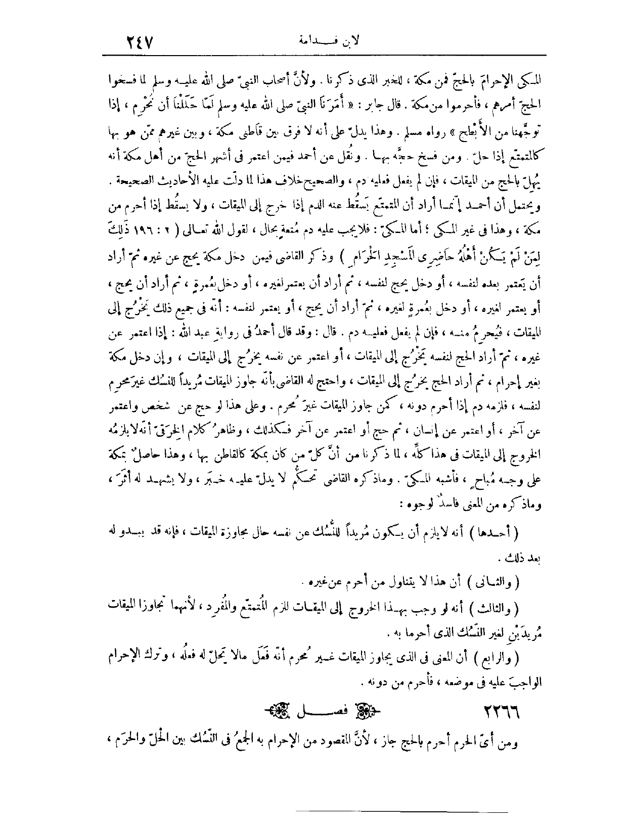 (٢٢٦٧) فَصْلٌ: وَمِنْ أَيِّ الْحَرَمِ أَحْرَمَ بِالْحَجِّ جَازَ؛ لِأَنَّ الْمَقْصُودَ مِنْ الْإِحْرَامِ بِهِ الْجَمْعُ فِي النُّسُكِ بَيْنَ الْحِلِّ وَالْحَرَمِ،