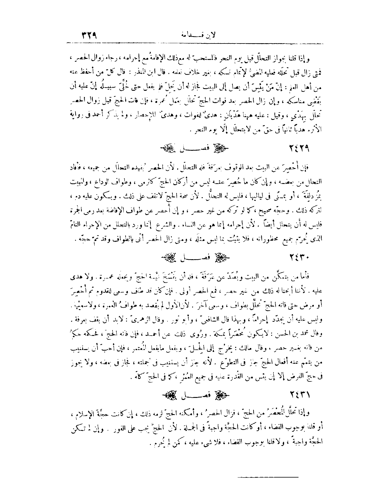 (٢٤٣٢) فَصْلٌ: وَإِذَا تَحَلَّلَ الْمُحْصَرُ مِنْ الْحَجِّ، فَزَالَ الْحَصْرُ، وَأَمْكَنَهُ الْحَجُّ لَزِمَهُ ذَلِكَ إنْ كَانَتْ حَجَّةَ الْإِسْلَامِ، أَوْ قُلْنَا بِوُجُوبِ الْقَضَاءِ، أَوْ كَانَتْ الْحَجَّةُ وَاجِبَةً فِي الْجُمْلَةِ؛ لِأَنَّ الْحَجَّ يَجِبُ عَلَى الْفَوْرِ. وَإِنْ لَمْ تَكُنْ الْحَجَّةُ وَاجِبَةً، وَلَا قُلْنَا بِوُجُوبِ الْقَضَاءِ، فَلَا شَيْءَ عَلَيْهِ، كَمَنْ لَمْ يُحْرِمْ.