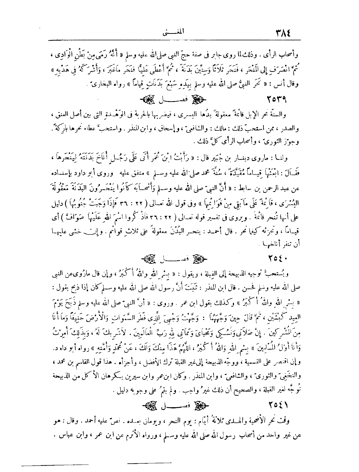 (٢٥٤٢) فَصْلٌ: وَوَقْتُ نَحْرِ الْأُضْحِيَّةِ وَالْهَدْيِ ثَلَاثَةُ أَيَّامٍ: يَوْمُ النَّحْرِ، وَيَوْمَانِ بَعْدَهُ، نَصَّ عَلَيْهِ أَحْمَدُ، وَقَالَ: هُوَ عَنْ غَيْرِ وَاحِدٍ مِنْ أَصْحَابِ رَسُولِ اللَّهِ - صَلَّى اللَّهُ عَلَيْهِ وَسَلَّمَ -. وَرَوَاهُ الْأَثْرَمُ، عَنْ ابْنِ عُمَرَ، وَابْنِ عَبَّاسٍ.
