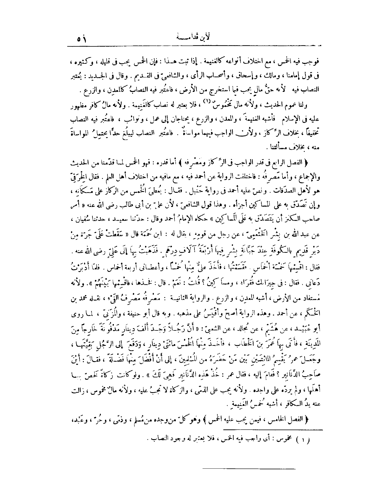(١٩٠٣) الْفَصْلُ الرَّابِعُ، فِي قَدْرِ الْوَاجِبِ فِي الرِّكَازِ، وَمَصْرِفِهِ، أَمَّا قَدْرُهُ فَهُوَ الْخُمْسُ؛ لِمَا قَدَّمْنَاهُ مِنْ الْحَدِيثِ وَالْإِجْمَاعِ، وَأَمَّا مَصْرِفُهُ فَاخْتَلَفَتْ الرِّوَايَةُ عَنْ أَحْمَدَ فِيهِ، مَعَ مَا فِيهِ مِنْ اخْتِلَافِ أَهْلِ الْعِلْمِ. فَقَالَ الْخِرَقِيِّ: هُوَ لِأَهْلِ الصَّدَقَاتِ. وَنَصَّ عَلَيْهِ أَحْمَدُ، فِي رِوَايَةِ حَنْبَلٍ، فَقَالَ: يُعْطِي الْخُمْسَ مِنْ الرِّكَازِ عَلَى مَكَانِهِ، وَإِنْ تَصَدَّقَ بِهِ عَلَى الْمَسَاكِينِ أَجْزَأَهُ.