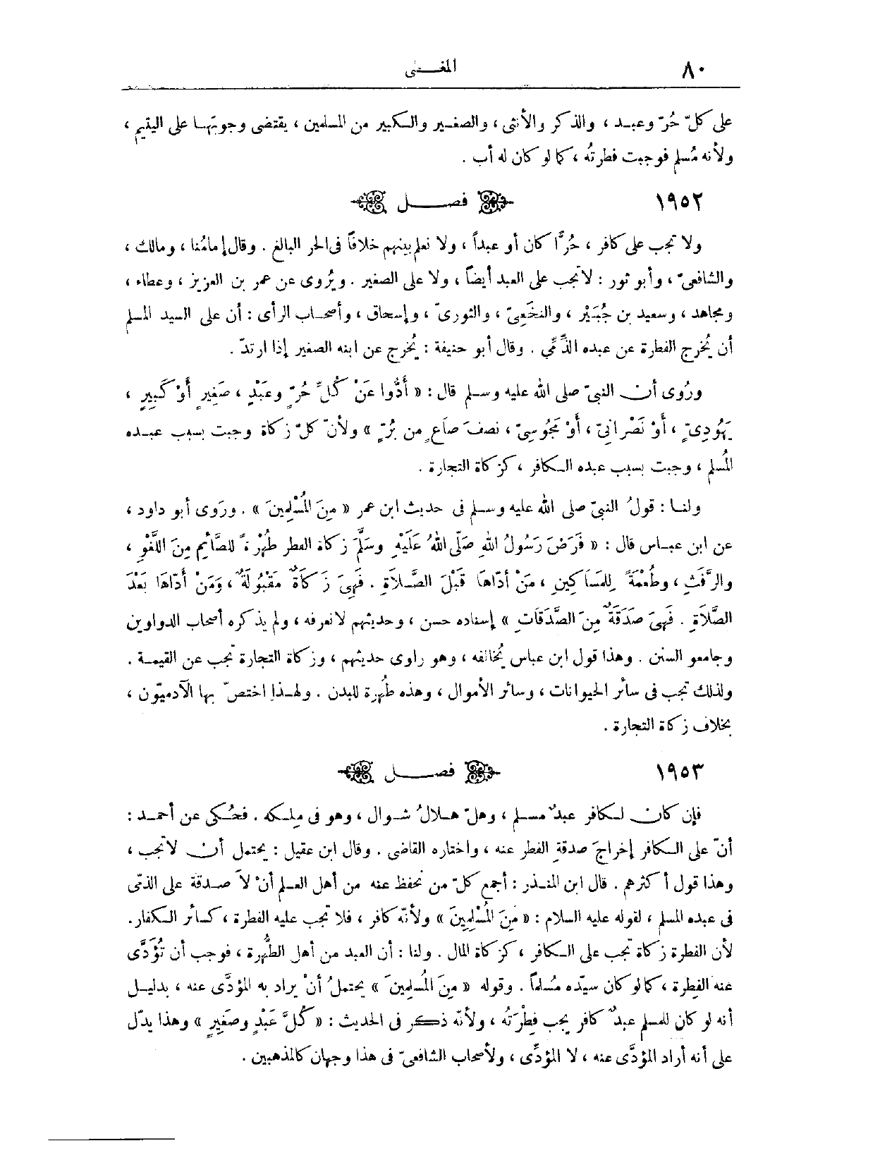 عَلَى كُلِّ حُرٍّ وَعَبْدٍ، وَالذَّكَرِ وَالْأُنْثَى، وَالصَّغِيرِ وَالْكَبِيرِ، مِنْ الْمُسْلِمِينَ» يَقْتَضِي وُجُوبَهَا عَلَى الْيَتِيمِ، وَلِأَنَّهُ مُسْلِمٌ فَوَجَبَتْ فِطْرَتُهُ كَمَا لَوْ كَانَ لَهُ أَبٌ (١٩٥٣) فَصْلُ وَلَا تَجِبُ عَلَى كَافِرٍ حُرًّا كَانَ أَوْ عَبْدًا. وَلَا نَعْلَمُ بَيْنَهُمْ خِلَافًا فِي الْحُرِّ الْبَالِغِ وَقَالَ إمَامُنَا، وَمَالِكٌ، وَالشَّافِعِيُّ، وَأَبُو ثَوْرٍ: لَا تَجِبُ عَلَى الْعَبْدِ أَيْضًا، وَلَا عَلَى الصَّغِيرِ.