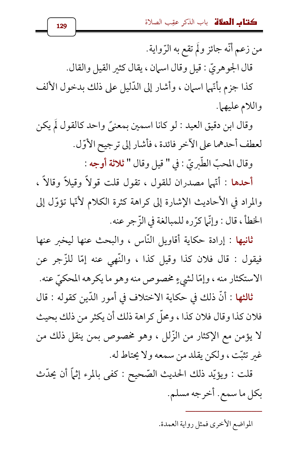 ثالثها: أنّ ذلك في حكاية الاختلاف في أمور الدّين كقوله: قال فلان كذا وقال فلان كذا، ومحلّ كراهة ذلك أن يكثر من ذلك بحيث لا يؤمن مع الإكثار من الزّلل، وهو مخصوص بمن ينقل ذلك من غير تثبّت، ولكن يقلد من سمعه ولا يحتاط له.