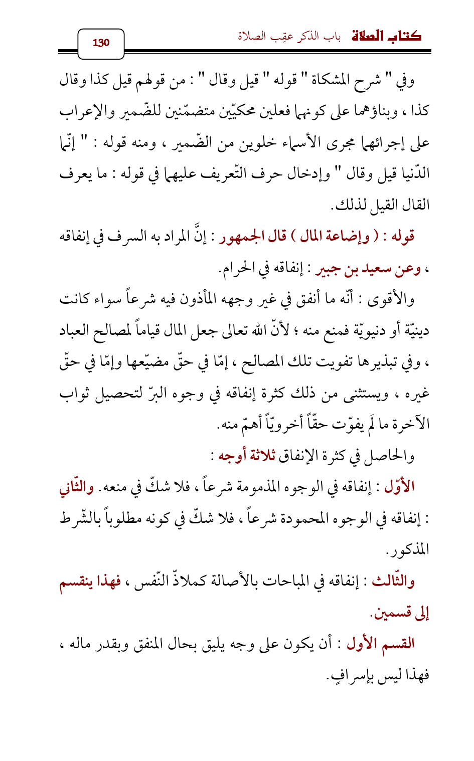 الأوّل: إنفاقه في الوجوه المذمومة شرعاً , فلا شكّ في منعه. والثّاني: إنفاقه في الوجوه المحمودة شرعاً , فلا شكّ في كونه مطلوباً بالشّرط المذكور.