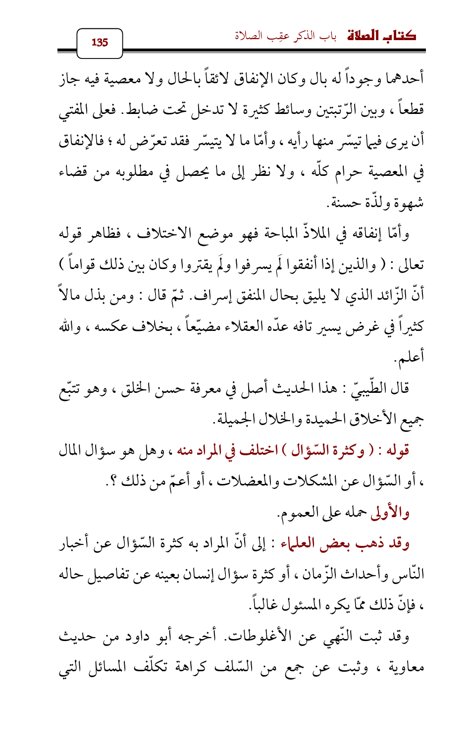 قوله: (وكثرة السّؤال) اختلف في المراد منه , وهل هو سؤال المال، أو السّؤال عن المشكلات والمعضلات، أو أعمّ من ذلك؟.