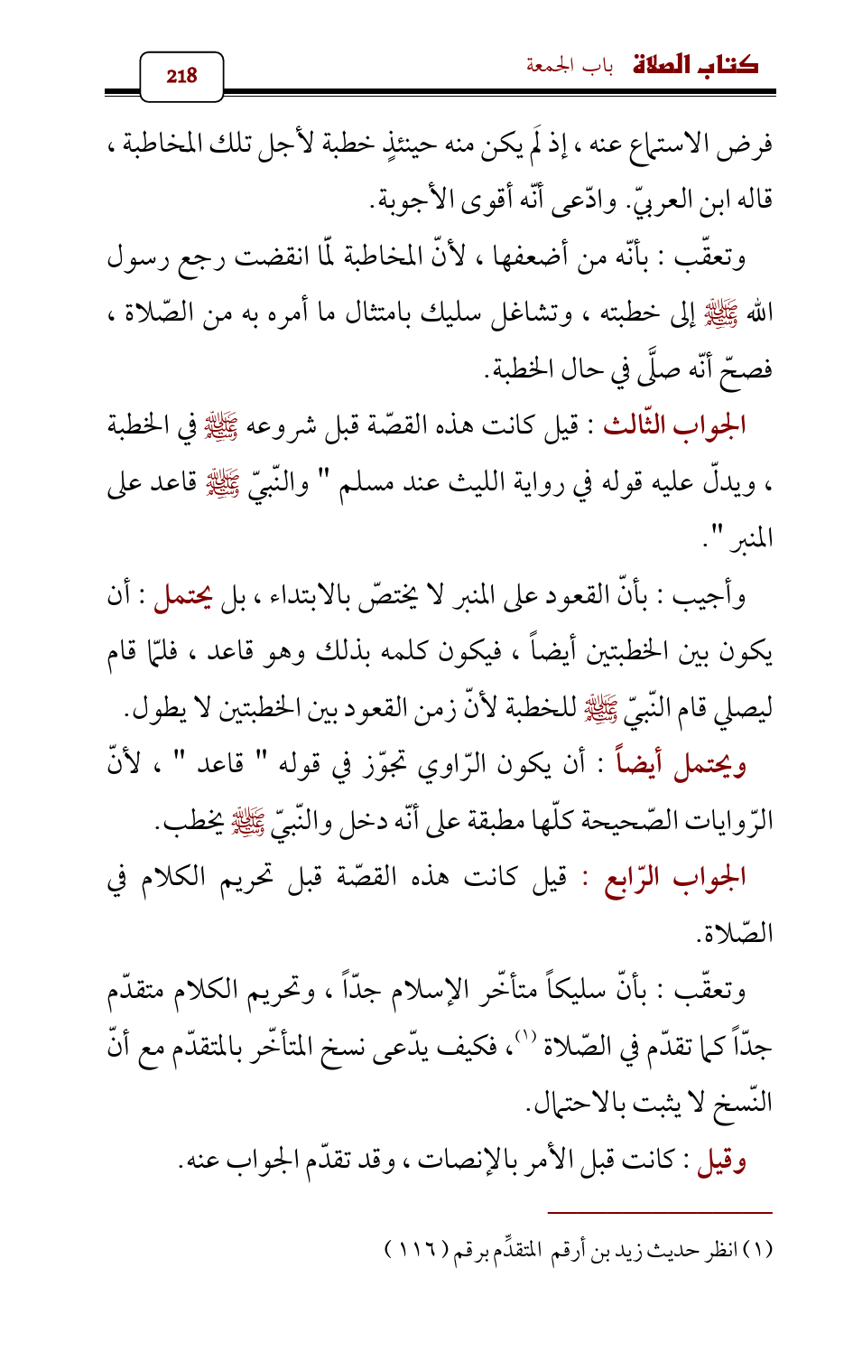 وتعقّب: بأنّ سليكاً متأخّر الإسلام جدّاً , وتحريم الكلام متقدّم جدّاً كما تقدّم في الصّلاة (¬1)، فكيف يدّعى نسخ المتأخّر بالمتقدّم مع أنّ النّسخ لا يثبت بالاحتمال.