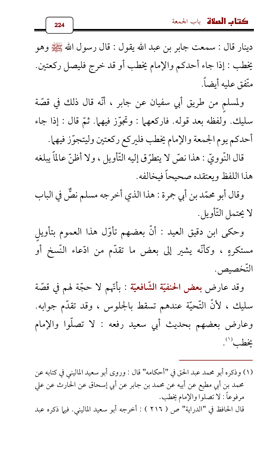 وقد عارض بعض الحنفيّة الشّافعيّة: بأنّهم لا حجّة لهم في قصّة سليك، لأنّ التّحيّة عندهم تسقط بالجلوس، وقد تقدّم جوابه. وعارض بعضهم بحديث أبي سعيد رفعه: لا تصلّوا والإمام يخطب (¬1).