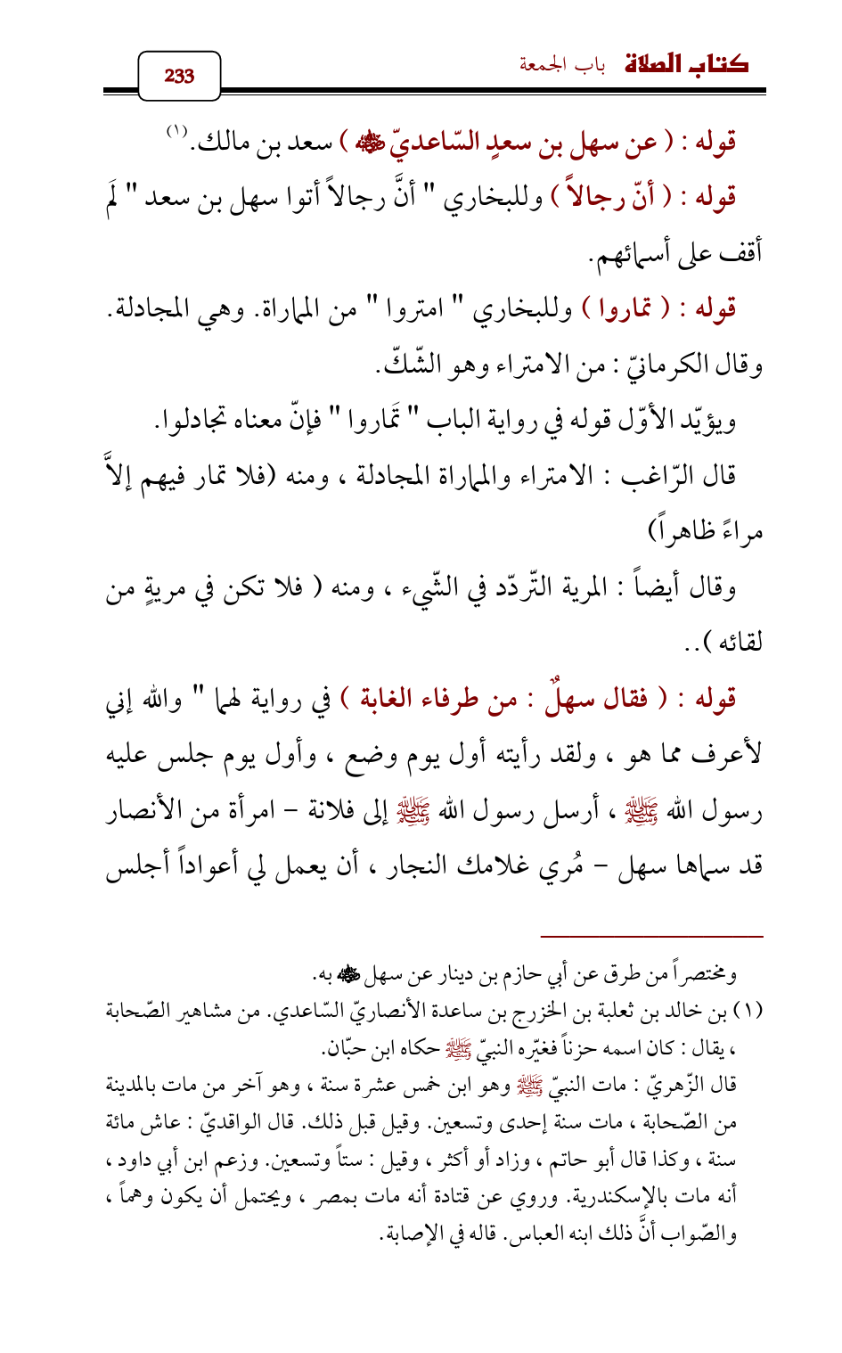 قوله: (عن سهل بن سعدٍ السّاعديّ - رضي الله عنه -) سعد بن مالك. (¬1)