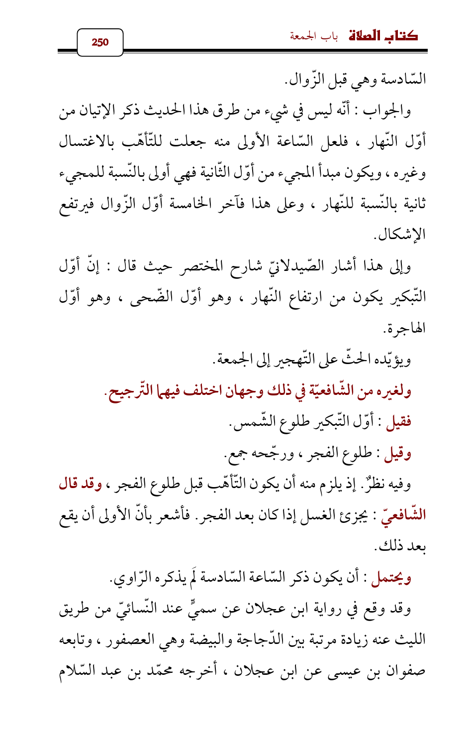 ويؤيّده الحثّ على التّهجير إلى الجمعة.