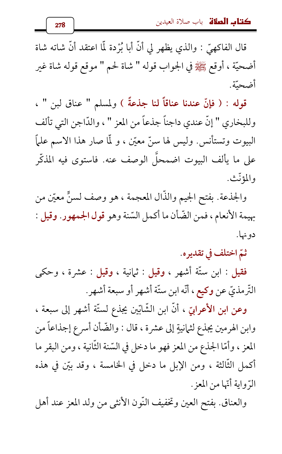 قال الفاكهيّ: والذي يظهر لي أنّ أبا بُرْدة لَمّا اعتقد أنّ شاته شاة أضحيّة , أوقع - صلى الله عليه وسلم - في الجواب قوله " شاة لحم " موقع قوله شاة غير أضحيّة.