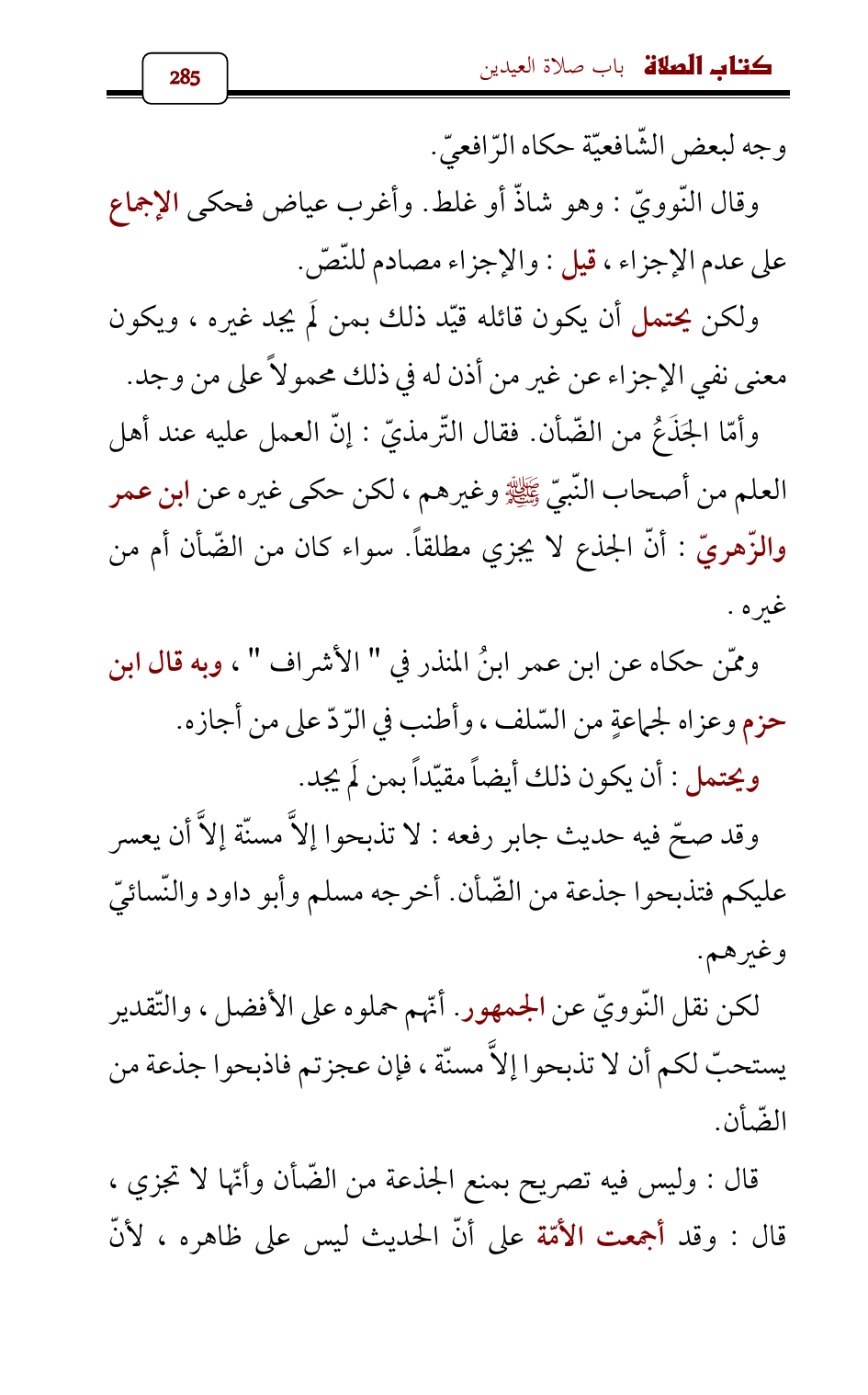 قال: وليس فيه تصريح بمنع الجذعة من الضّأن وأنّها لا تجزي، قال: وقد أجمعت الأمّة على أنّ الحديث ليس على ظاهره، لأنّ