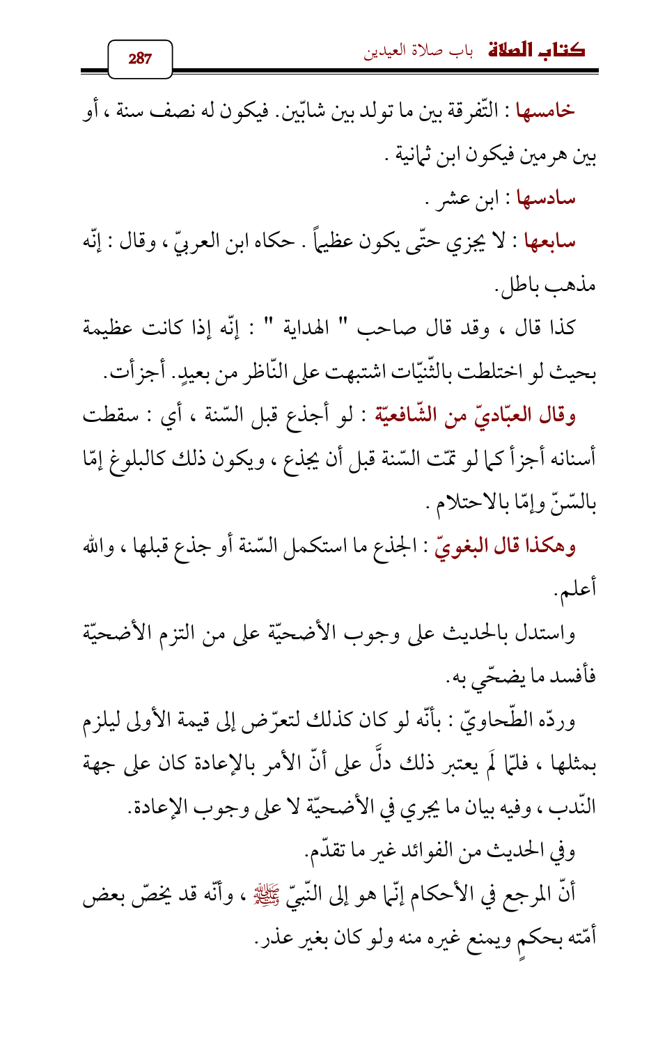 سابعها: لا يجزي حتّى يكون عظيماً. حكاه ابن العربيّ , وقال: إنّه مذهب باطل.