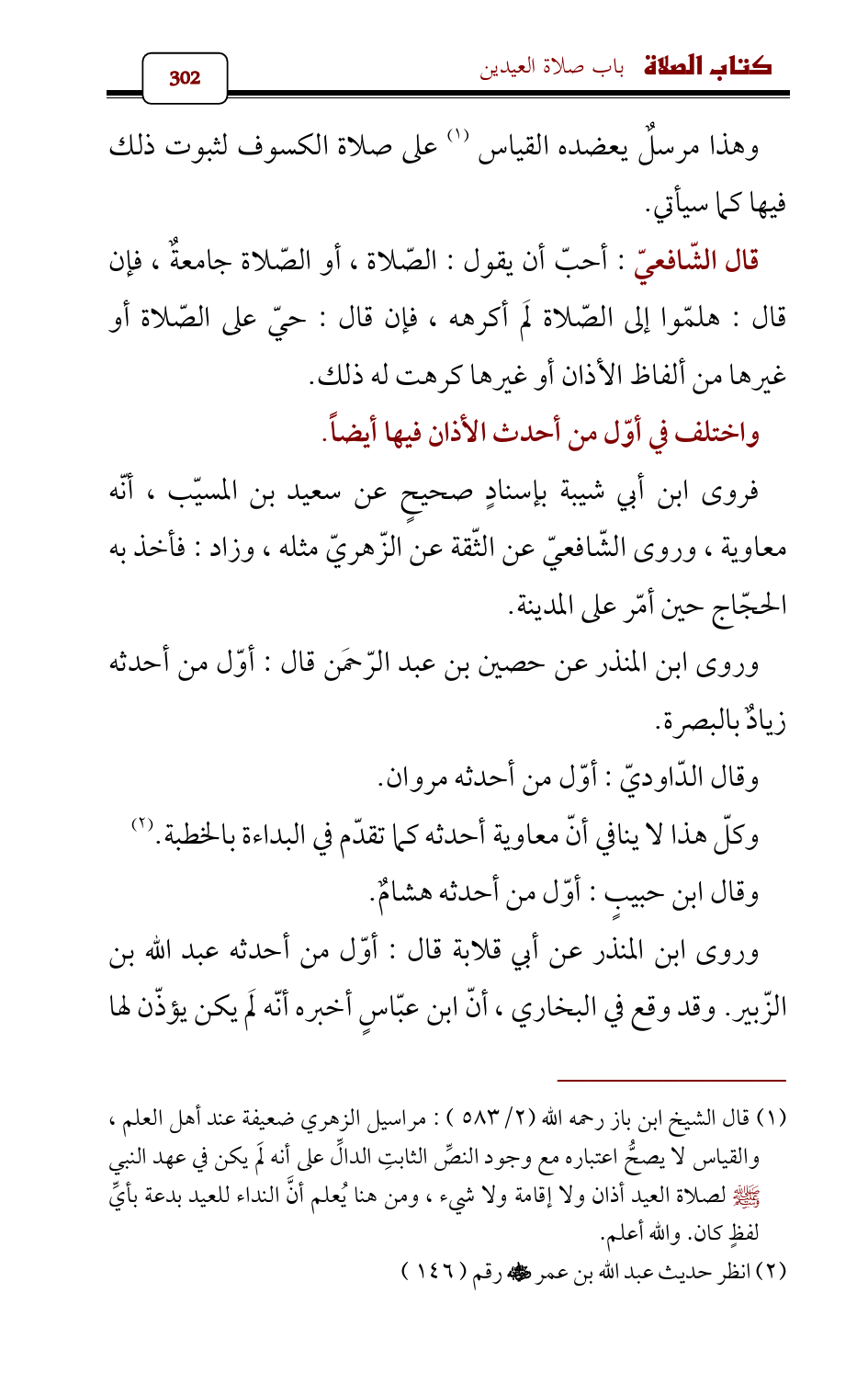 (¬1) قال الشيخ ابن باز رحمه الله (2/ 583): مراسيل الزهري ضعيفة عند أهل العلم , والقياس لا يصحُّ اعتباره مع وجود النصِّ الثابتِ الدالِّ على أنه لَم يكن في عهد النبي - صلى الله عليه وسلم - لصلاة العيد أذان ولا إقامة ولا شيء , ومن هنا يُعلم أنَّ النداء للعيد بدعة بأيِّ لفظٍ كان. والله أعلم.