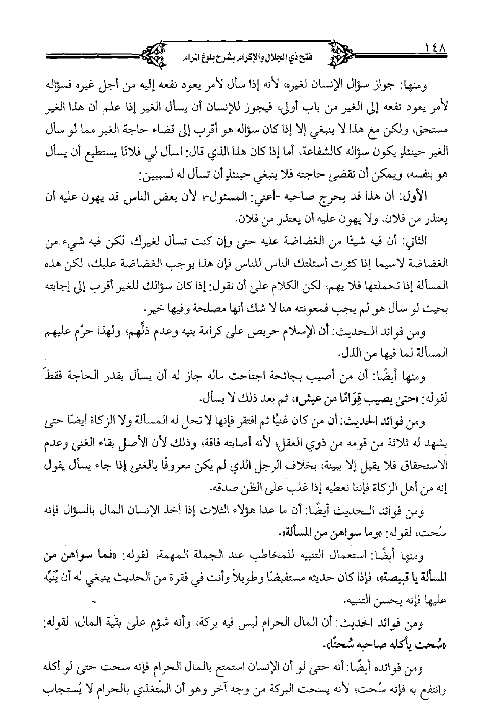ومن فوائد الحديث أيضًا: أن ما عدا هؤلاء الثلاث إذا أخذ الإنسان المال بالسؤال فإنه سحت، لقوله: "وما سواهن من المسألة".