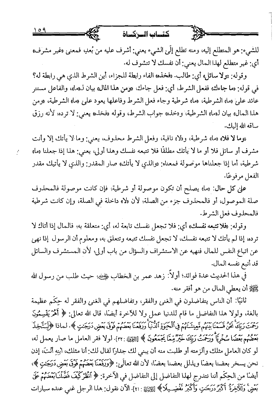 وقوله: "فلا تتبعه نفسك" أي: فلا تجعل نفسك تابعة له، أي: متعلقة به؛ فالمال إذا أتاك لا ترده، إذا لم يأتك لا تتبعه نفسك، لا تجعل نفسك تتبعه وتتعلق به، ومعلوم أن الرسول إذا نهى عن اتباع النفس للمال فنهيه عن الاستشراف والسؤال من باب أولى؛ لأن المستشرف والسائل قد أتبع نفسه المال.