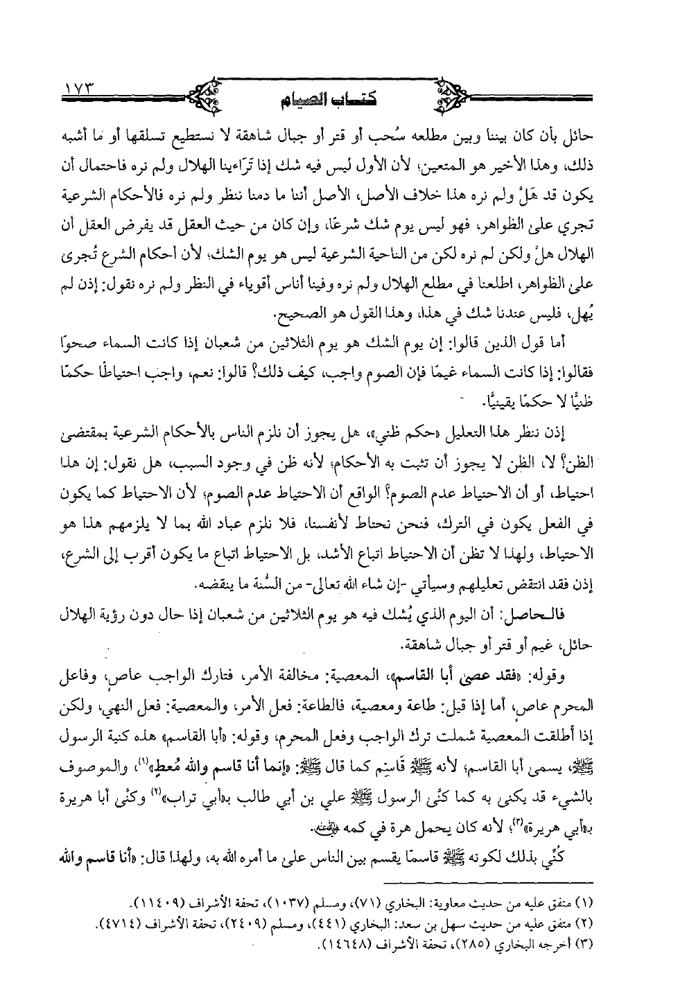إذن ننظر هذا التعليل "حكم ظني"، هل يجوز أن نلزم الناس بالأحكام الشرعية بمقتضى الظن؟ لا، الظن لا يجوز أن تثبت به الأحكام؛ لأنه ظن في وجود السبب، هل نقول: إن هذا احتياط، أو أن الاحتياط عدم الصوم؟ الواقع أن الاحتياط عدم الصوم؛ لأن الاحتياط كما يكون في الفعل يكون في الترك، فنحن نحتاط لأنفسنا، فلا نلزم عباد الله بما لا يلزمهم هذا هو الاحتياط، ولهذا لا تظن أن الاحتياط اتباع الأشد، بل الاحتياط اتباع ما يكون أقرب إلى الشرع، إذن فقد انتقض تعليلهم وسيأتي- إن شاء الله تعالى- من السُّنة ما ينقضه.