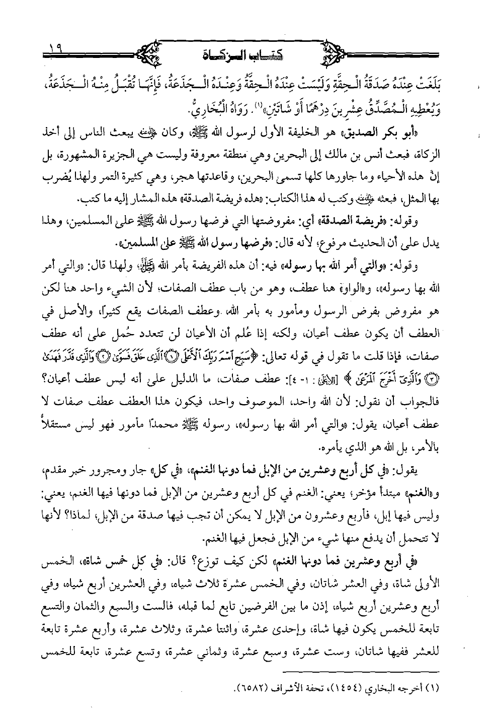 "في أربع وعشرين فما دونها الغنم" لكن كيف توزع؟ قال: "في كل خمس شاة"، الخمس الأولى شاة، وفي العشر شاتان، وفي الخمس عشرة ثلاث شياه، وفي العشرين أربع شياه، وفي أربع وعشرين أربع شياه، إذن ما بين الفرضين تابع لما قبله، فالست والسبع والثمان والتسع تابعة للخمس يكون فيها شاة، وإحدى عشرة، واثنتا عشرة، وثلاث عشرة، وأربع عشرة تابعة للعشر ففيها شاتان، وست عشرة، وسبع عشرة، وثماني عشرة، وتسع عشرة، تابعة للخمس