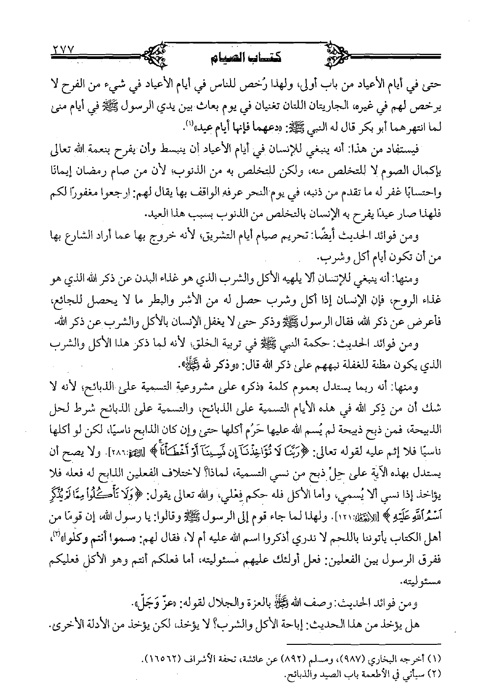 فيستفاد من هذا: أنه ينبغي للإنسان في أيام الأعياد أن ينبسط وأن يفرح بنعمة الله تعالى بإكمال الصوم لا للتخلص منه، ولكن للتخلص به من الذنوب، لأن من صام رمضان إيمانًا واحتسابًا غفر له ما تقدم من ذنبه، في يوم النحر عرفه الواقف بها يقال لهم: ارجعوا مغفورًا لكم فلهذا صار عيدًا يفرح به الإنسان بالتخلص من الذنوب بسبب هذا العيد.