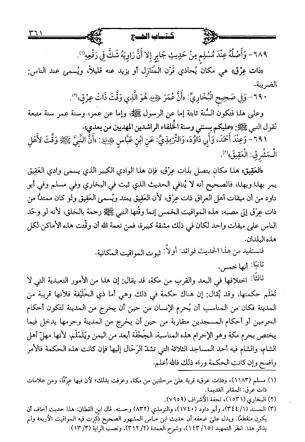 690 - وفي صحيح البخاري: "أن عمر رضي الله عنه هو الذي وقت ذات عرق"