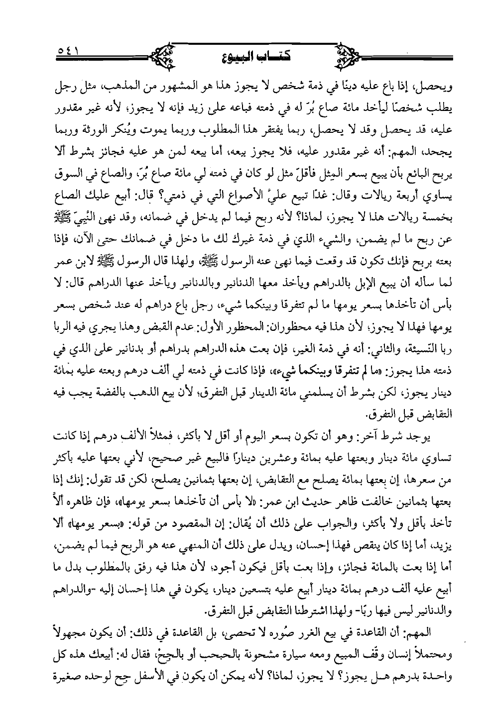 يوجد شرط آخر: وهو أن تكون بسعر اليوم أو أقل لا بأكثر، فمثلًا الألف درهم إذا كانت تساوي مائة دينار وبعتها عليه بمائة وعشرين دينارًا فالبيع غير صحيح، لأني بعتها عليه بأكثر من سعرها، إن بعتها بمائة يصلح مع التقابض، إن بعتها بثمانين يصلح، لكن قد تقول: إنك إذا بعتها بثمانين خالفت ظاهر حديث ابن عمر: "لا بأس أن تأخذها بسعر يومها"، فإن ظاهره ألَّا تأخذ بأقل ولا بأكثر، والجواب على ذلك أن يقال: إن المقصود من قوله: "بسعر يومها" ألا يزيد، أما إذا كان ينقص فهذا إحسان، ويدل على ذلك أن المنهي عنه هو الربح فيما لم يضمن، أما إذا بعت بالمائة فجائز، وإذا بعت بأقل فيكون أجود؛ لأن هذا فيه رفق بالمطلوب بدل ما أبيع عليه ألف درهم بمائة دينار أبيع عليه بتسعين دينار، يكون في هذا إحسان إليه -والدراهم والدنانير ليس فيها ربا- ولهذا اشترطنا التقابض قبل التفرق.