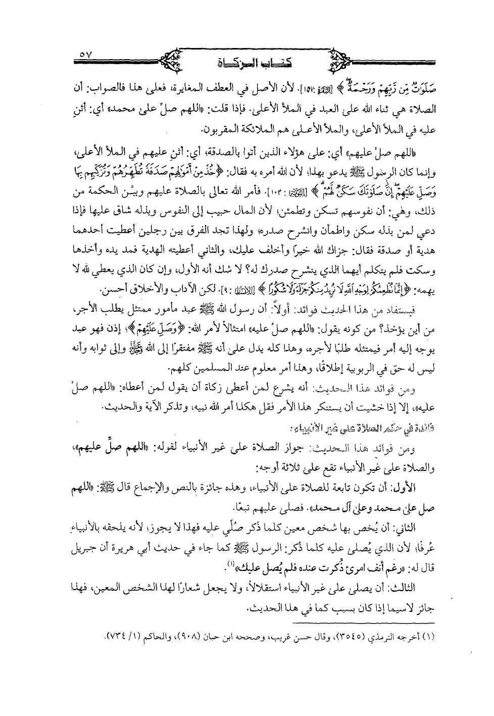 الثالث: أن يصلى على غير الأنبياء استقلالًا، ولا يجعل شعارا لهذا الشخص المعين، فهذا جائز لا سيما إذا كان بسبب كما في هذا الحديث.